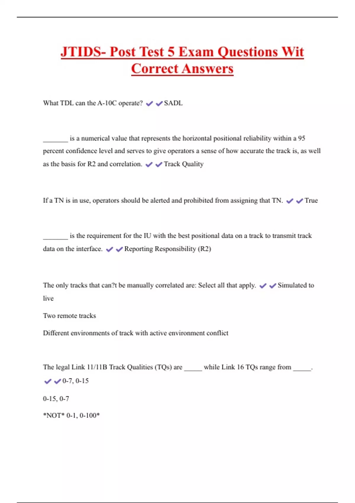 JTIDS- Post Test 5 Exam Questions Wit Correct Answers