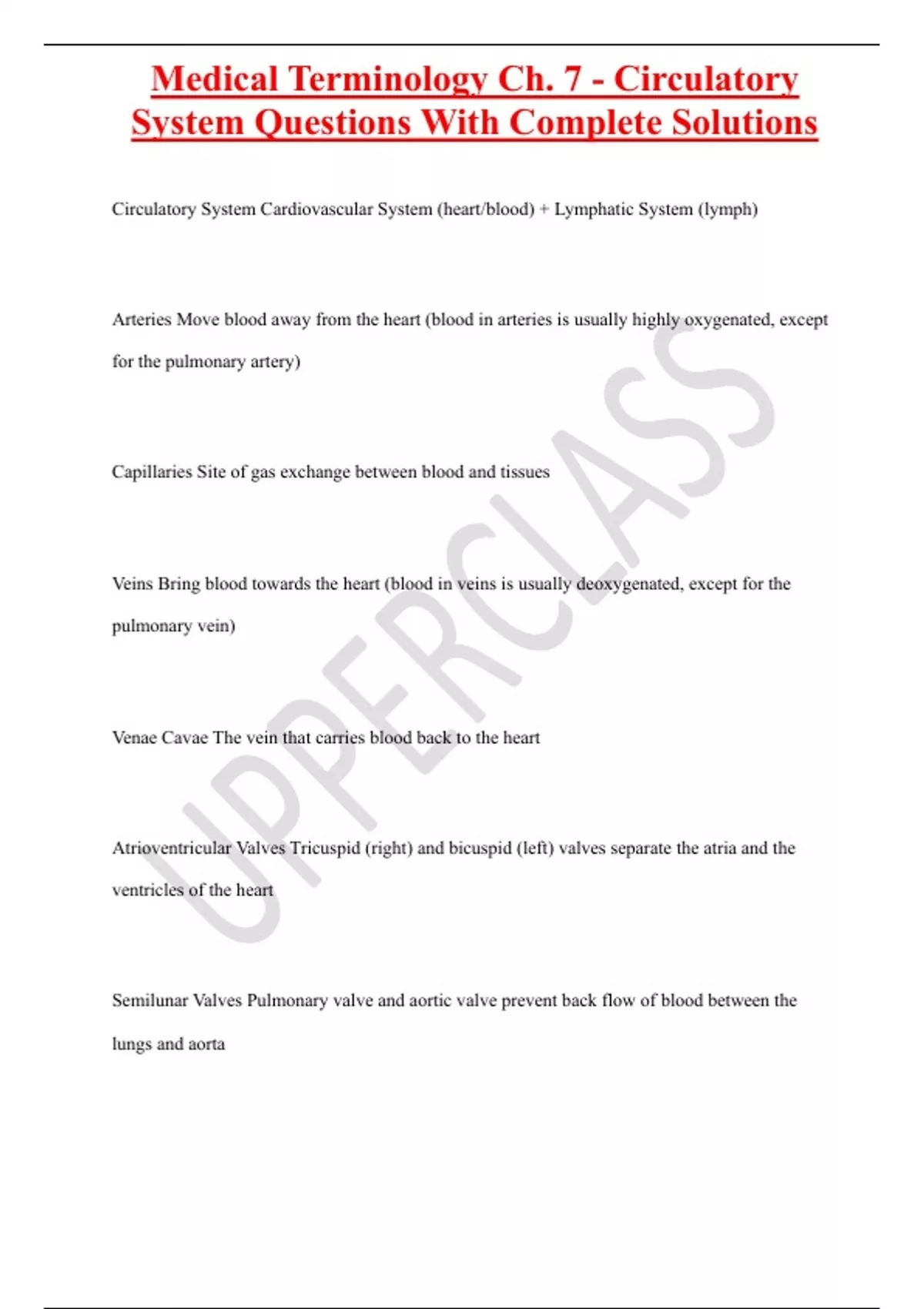 , Medical Terminology Ch. 7 - Circulatory