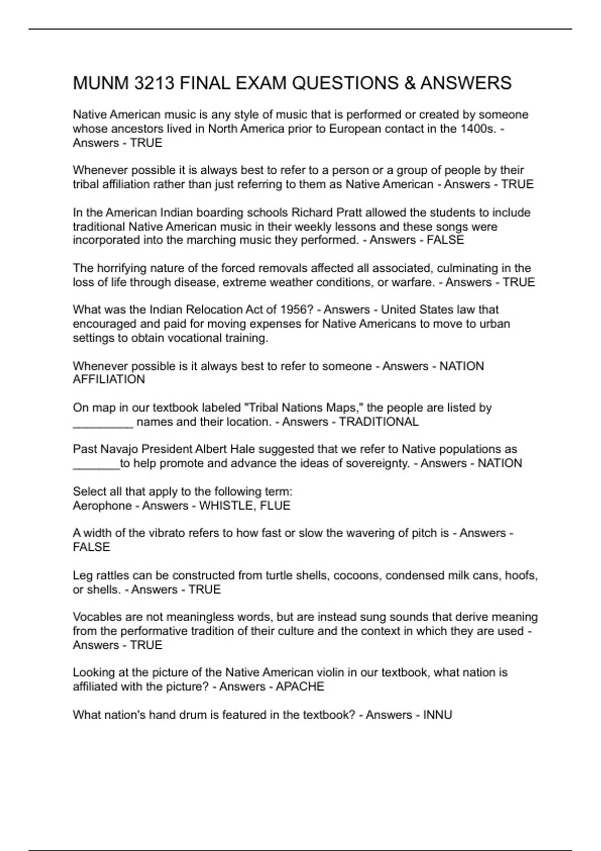 MUNM 3213 FINAL EXAM QUESTIONS & ANSWERS