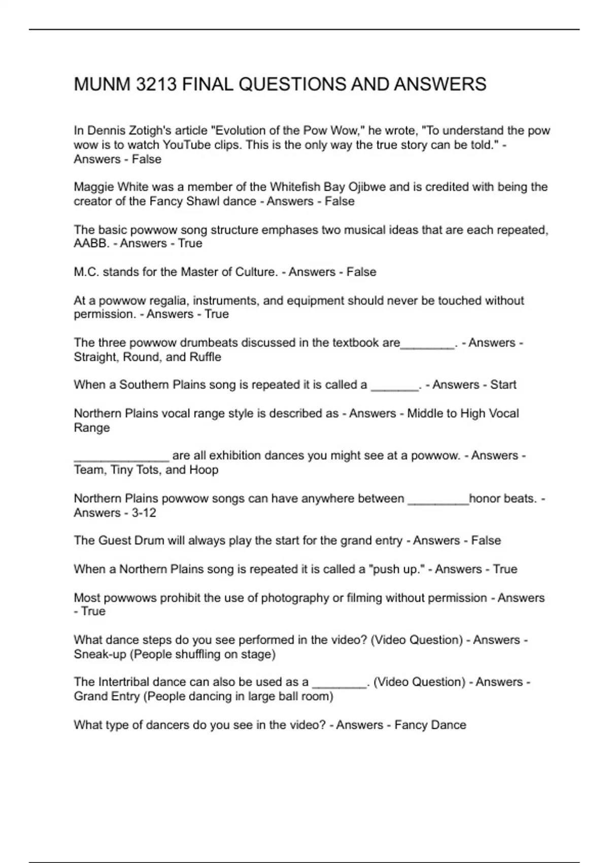 MUNM 3213 FINAL QUESTIONS AND ANSWERS