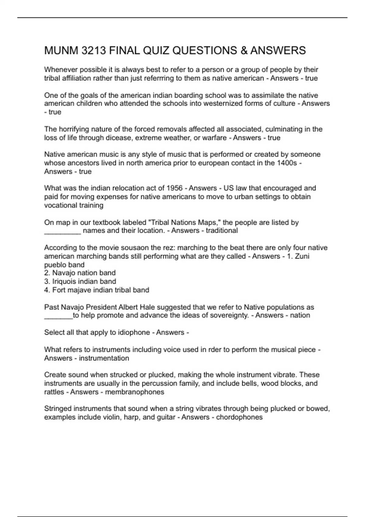 MUNM 3213 FINAL QUIZ QUESTIONS & ANSWERS