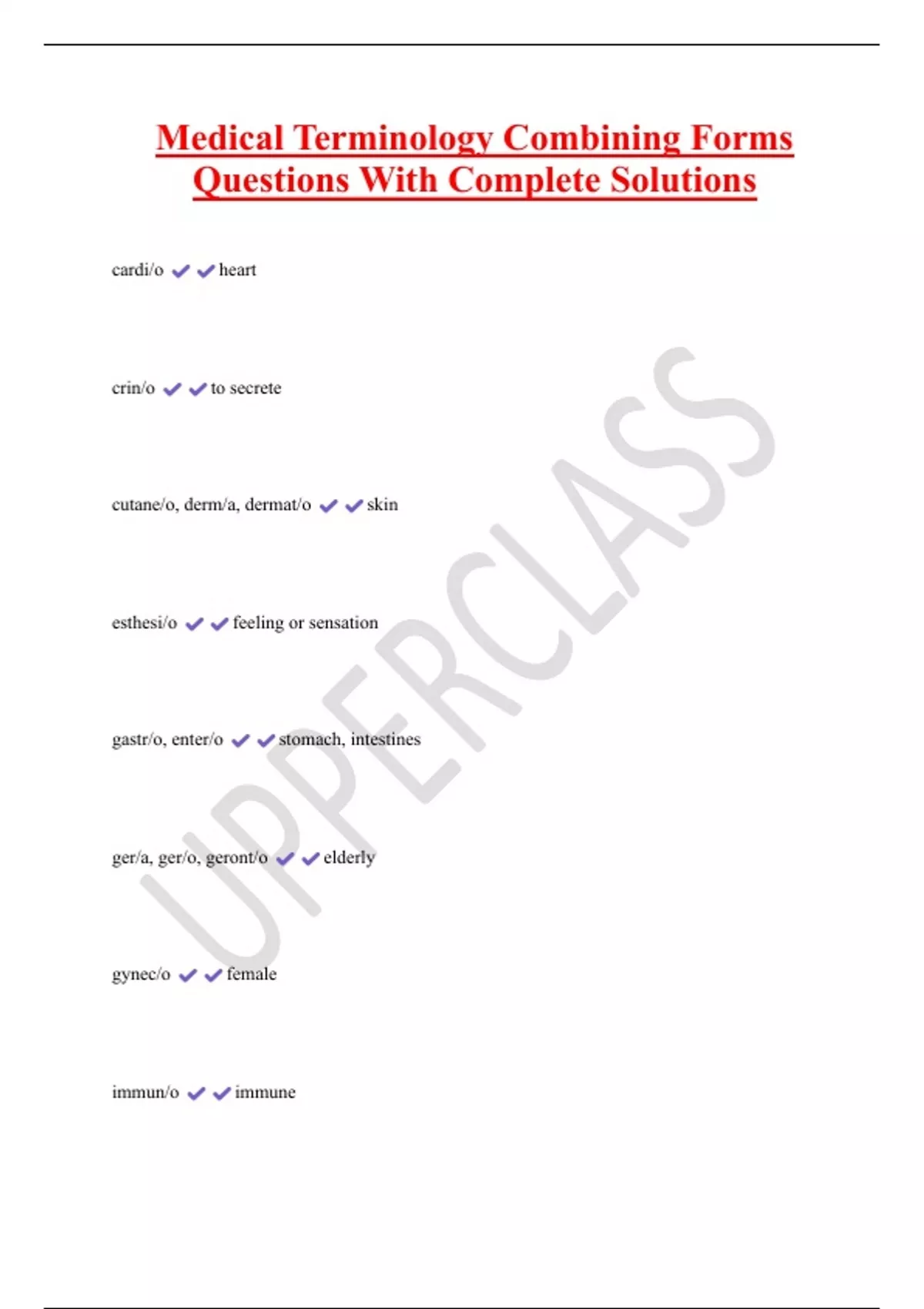 , Medical Terminology Combining Forms