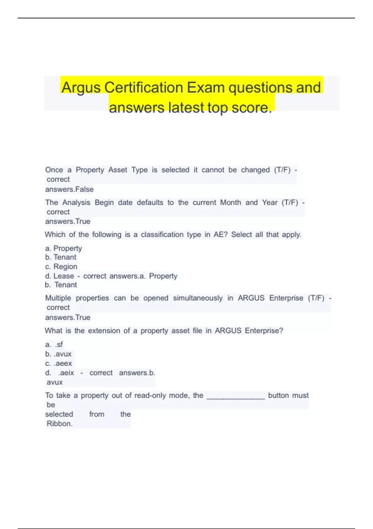 Argus Certification Exam questions and