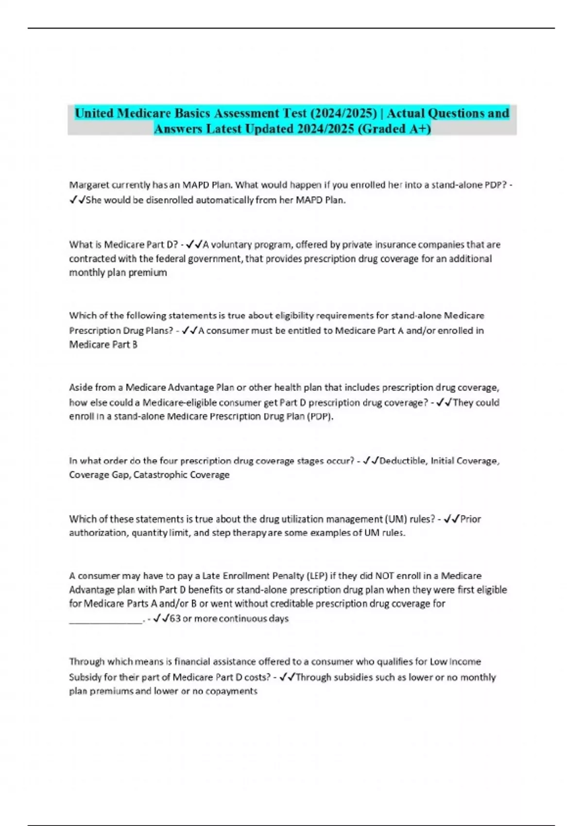 United Medicare Basics Assessment Test (2024/2025) | Actual Questions and Answers Latest Updated 2024/2025 (Graded A+)