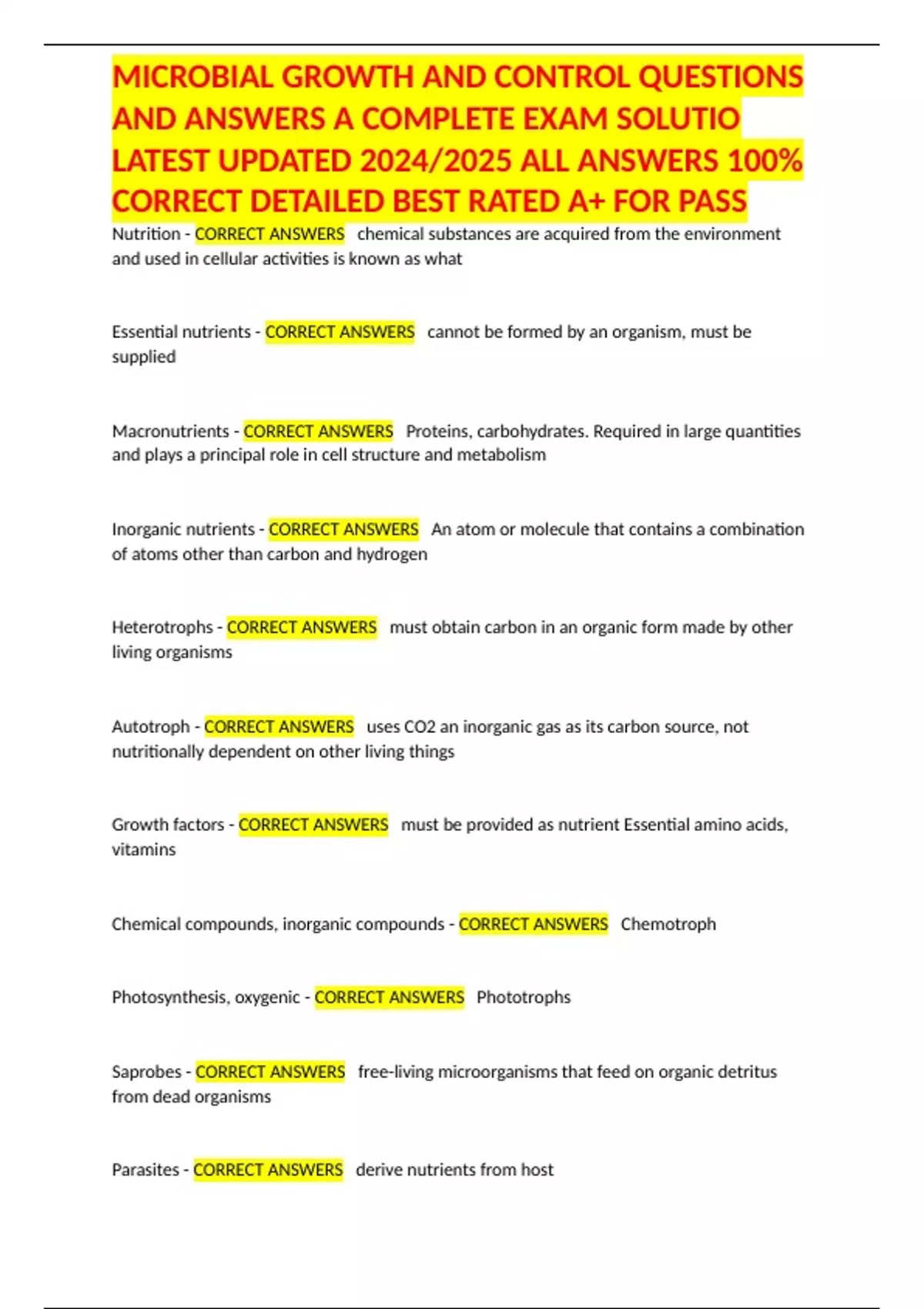 CORRECT DETAILED BEST RATED A+ FOR PASS