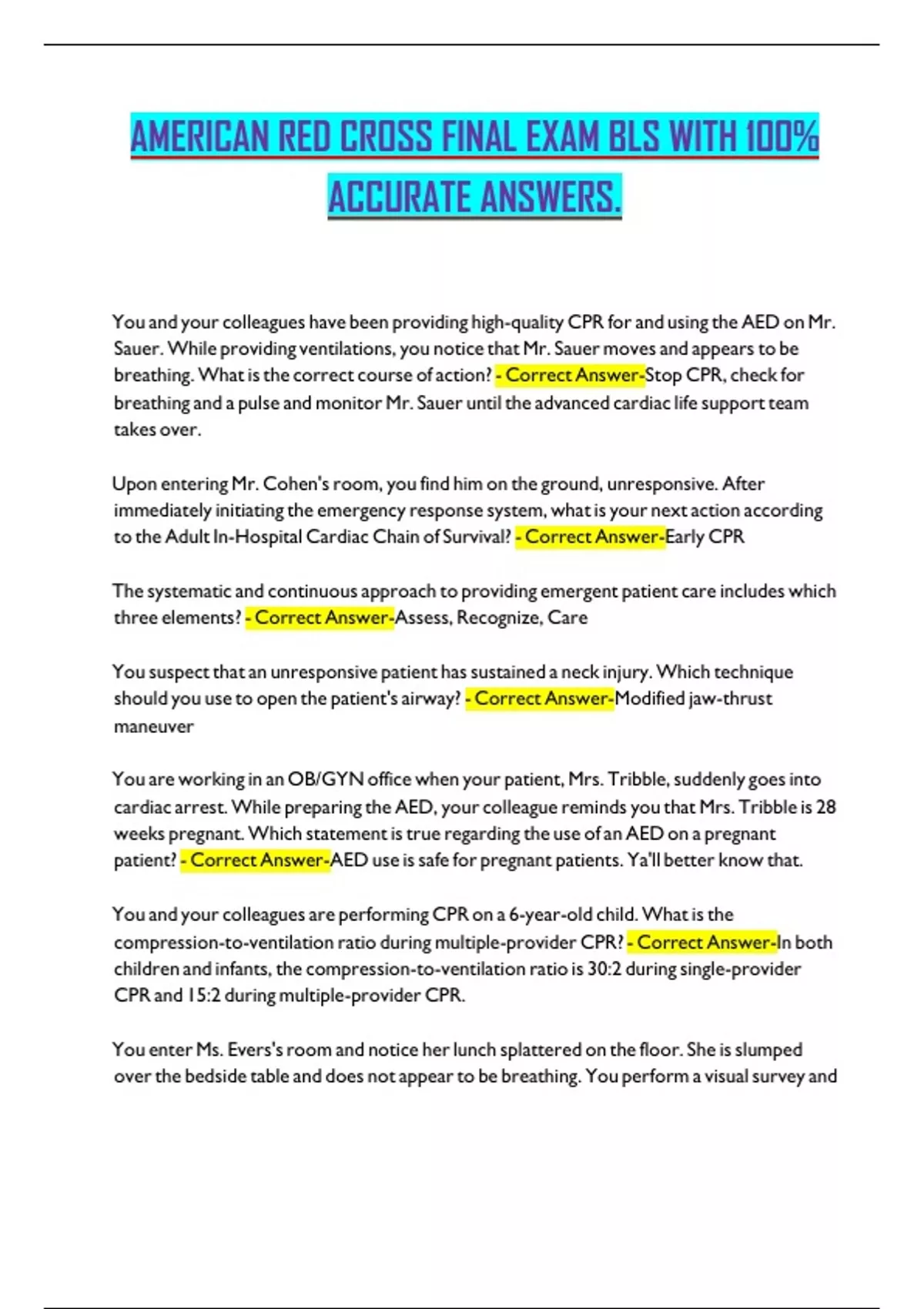 AMERICAN RED CROSS FINAL EXAM BLS WITH 100%