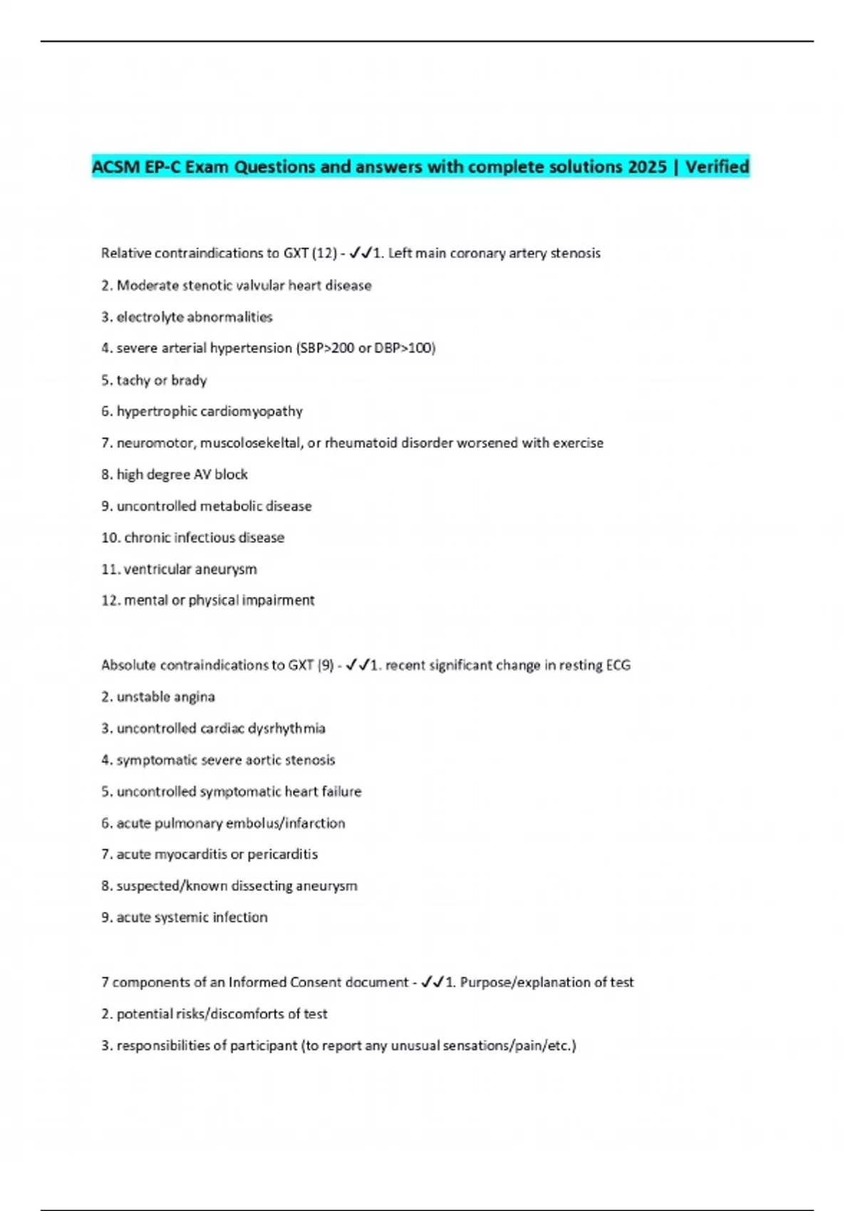 ACSM EP-C Exam Questions and answers with complete solutions 2025 | Verified