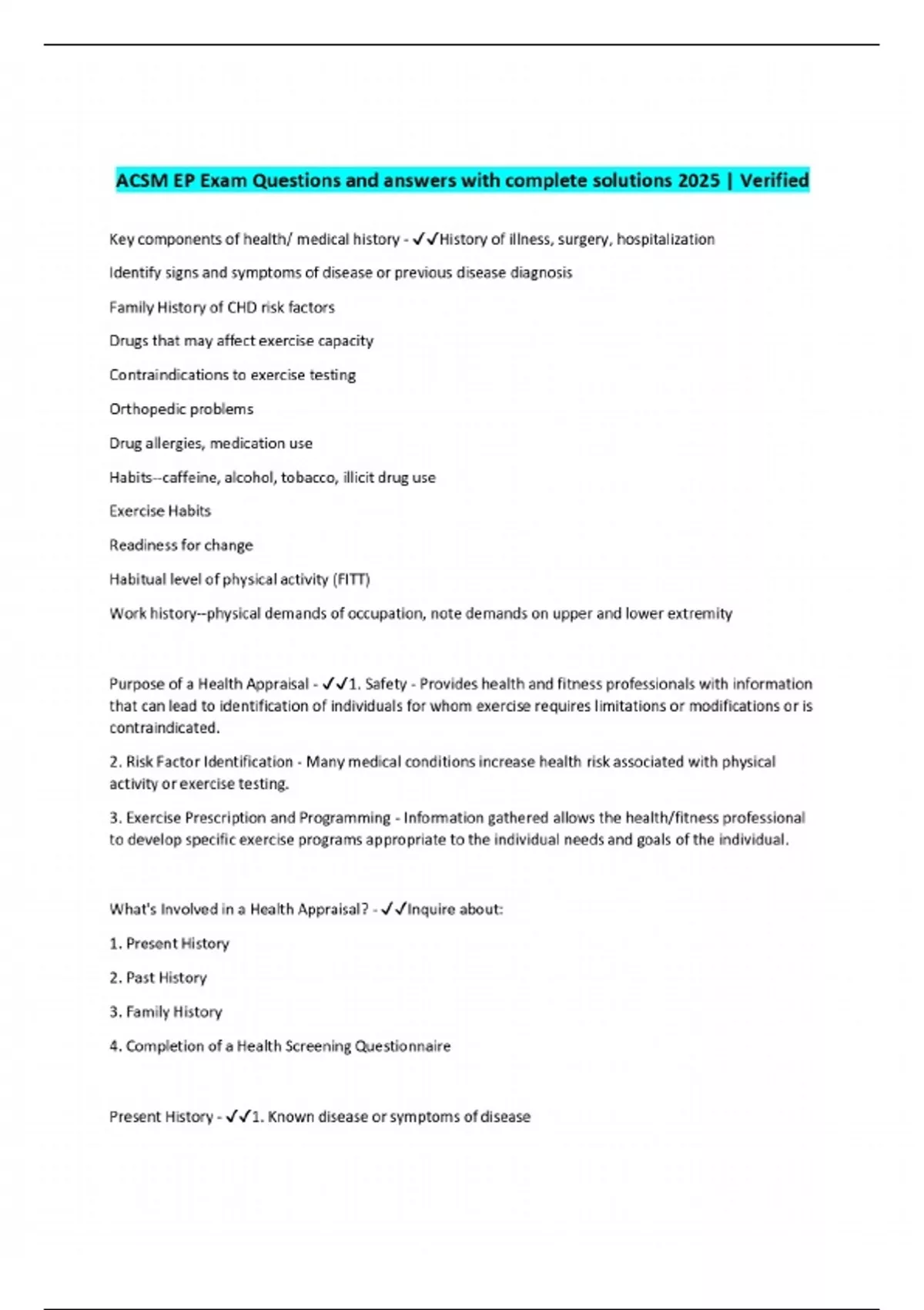 ACSM EP Exam Questions and answers with complete solutions 2025 | Verified