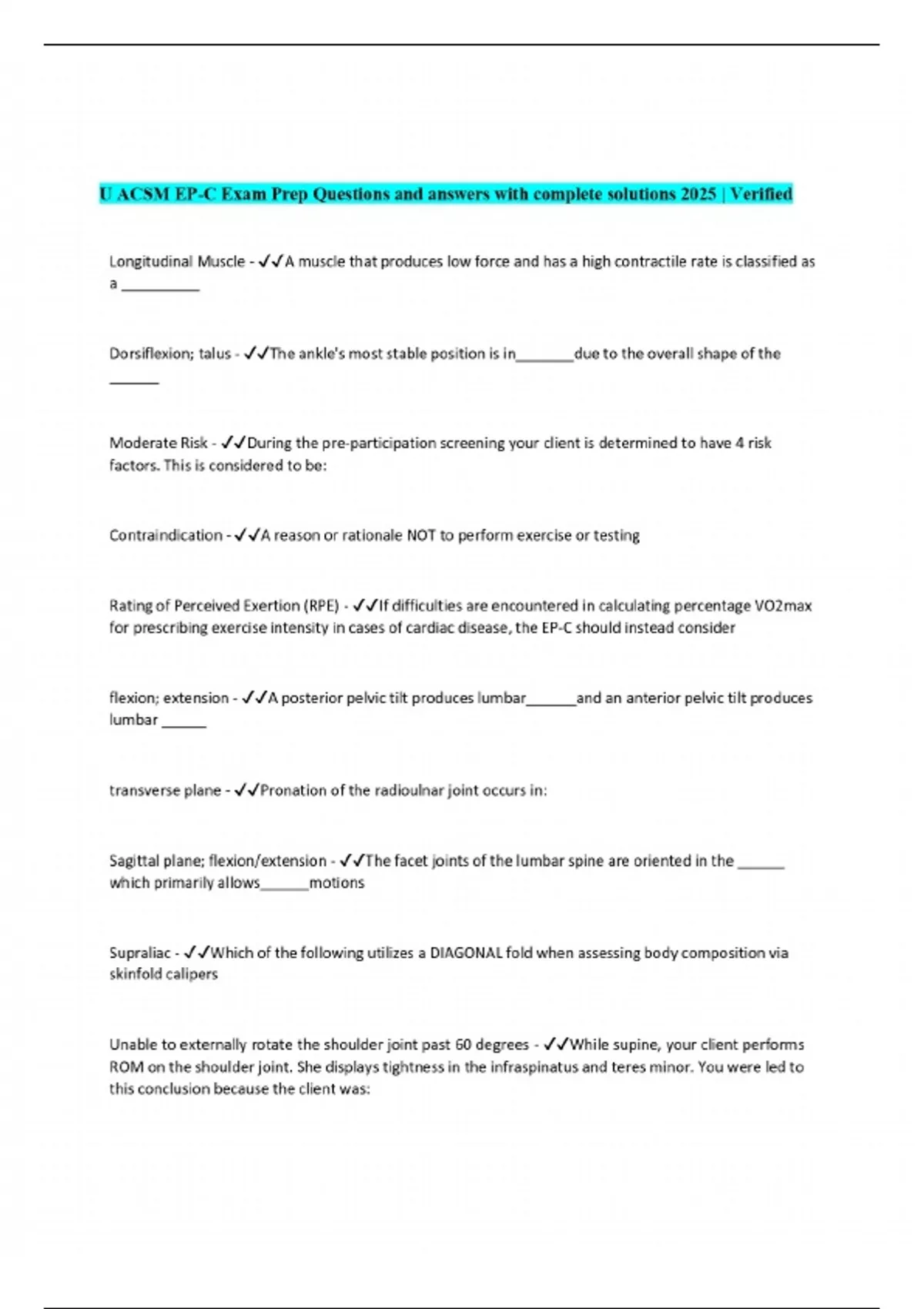 ACSM EP-C Exam Prep Questions and answers with complete solutions 2025 | Verified