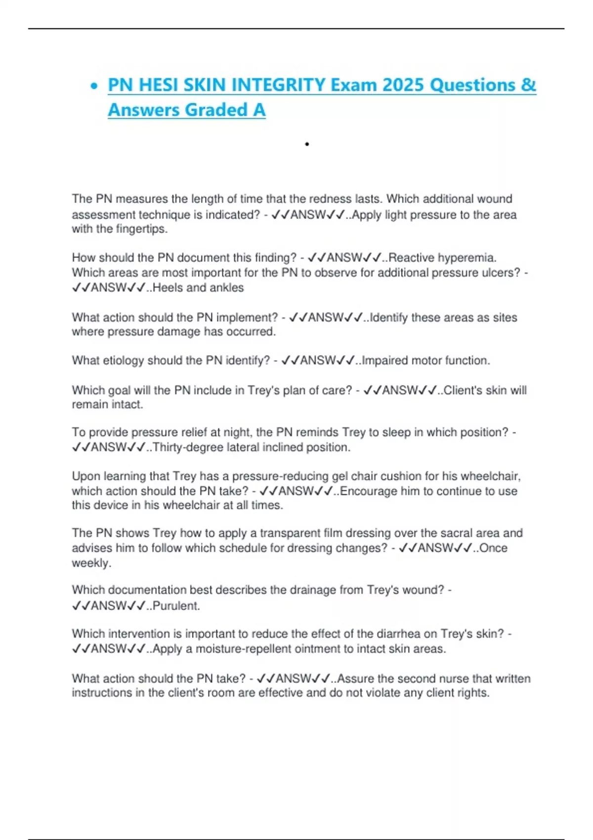 Which goal will the PN include in Trey's plan of care? - ✔✔ANSW✔✔..Client's skin will