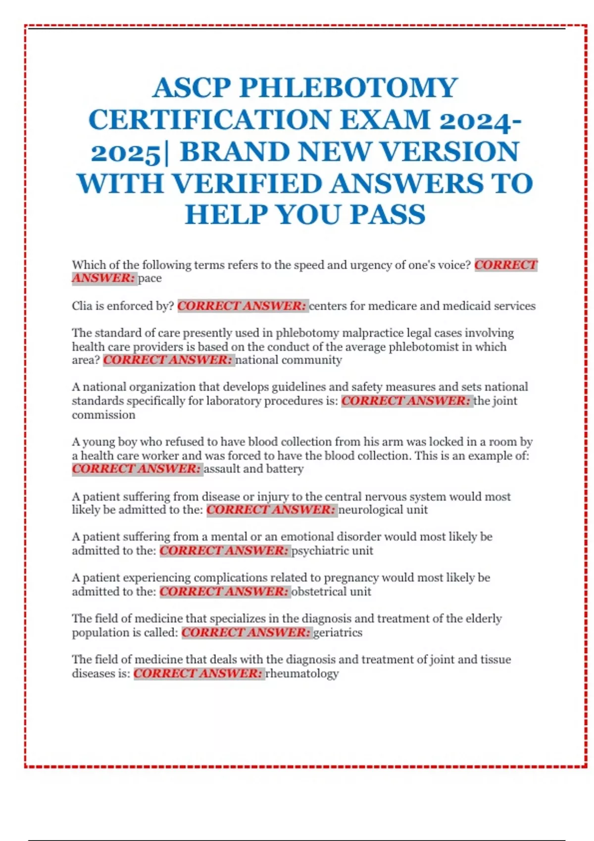 ASCP PHLEBOTOMY CERTIFICATION EXAM 2024- 2025| BRAND NEW VERSION WITH VERIFIED ANSWERS TO HELP YOU PASS