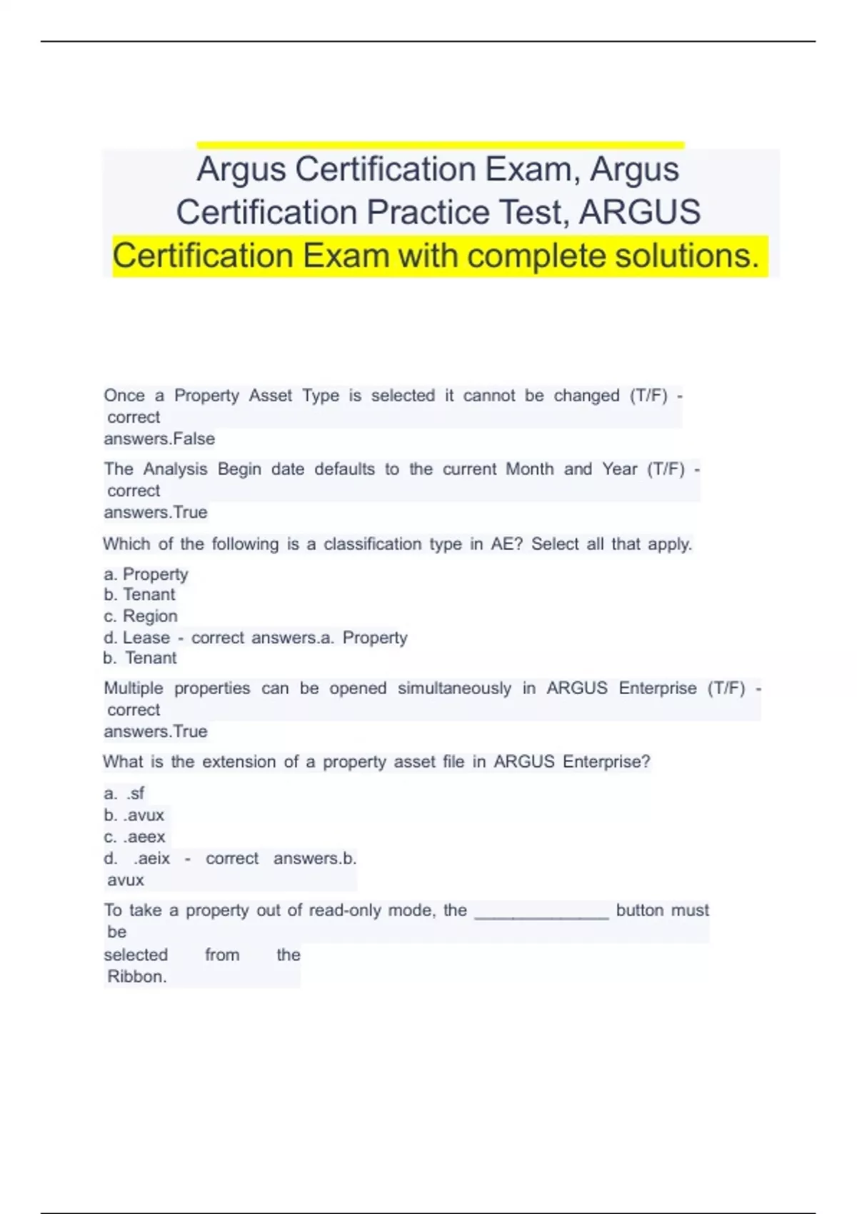 Certification Exam with complete solutions.