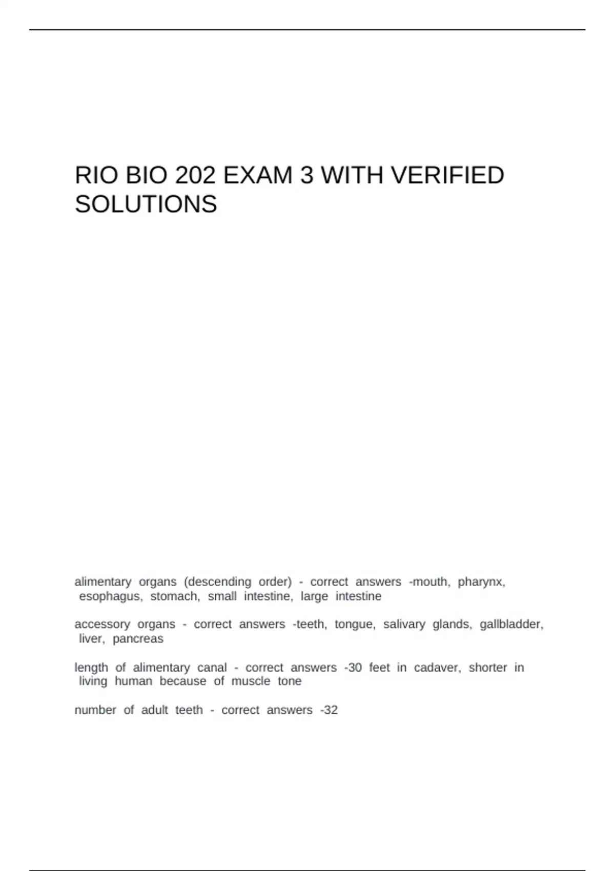 RIO BIO 202 EXAM 3 WITH VERIFIED
