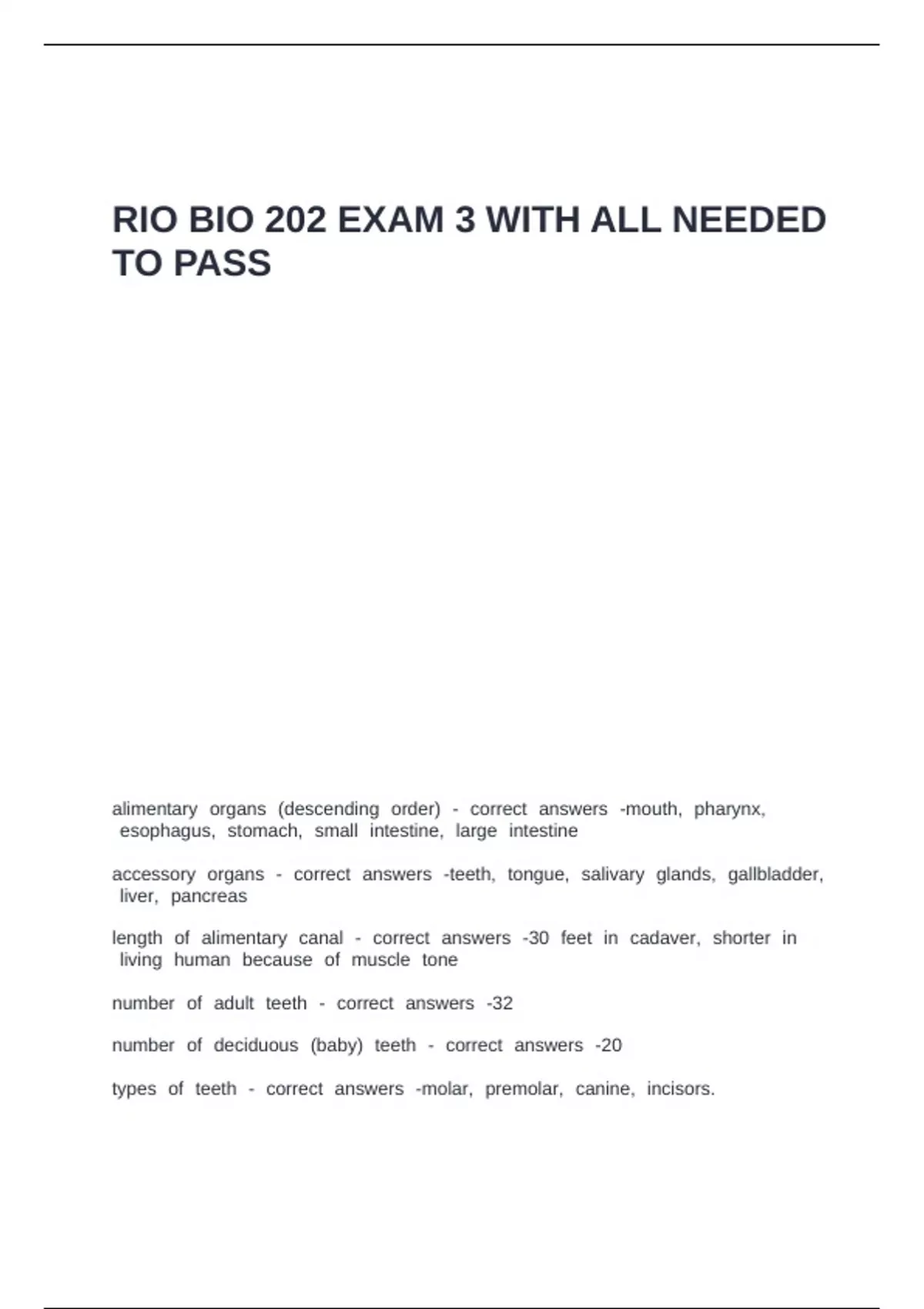 RIO BIO 202 EXAM 3 WITH ALL NEEDED