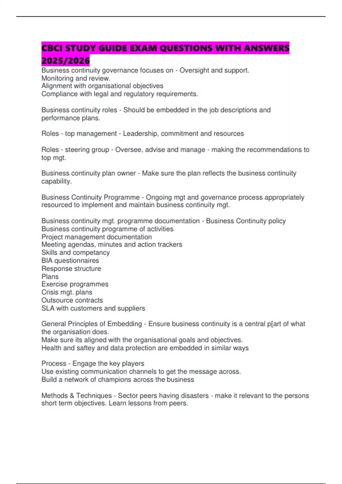 Business Continuity Programme - Ongoing mgt and governance process appropriately