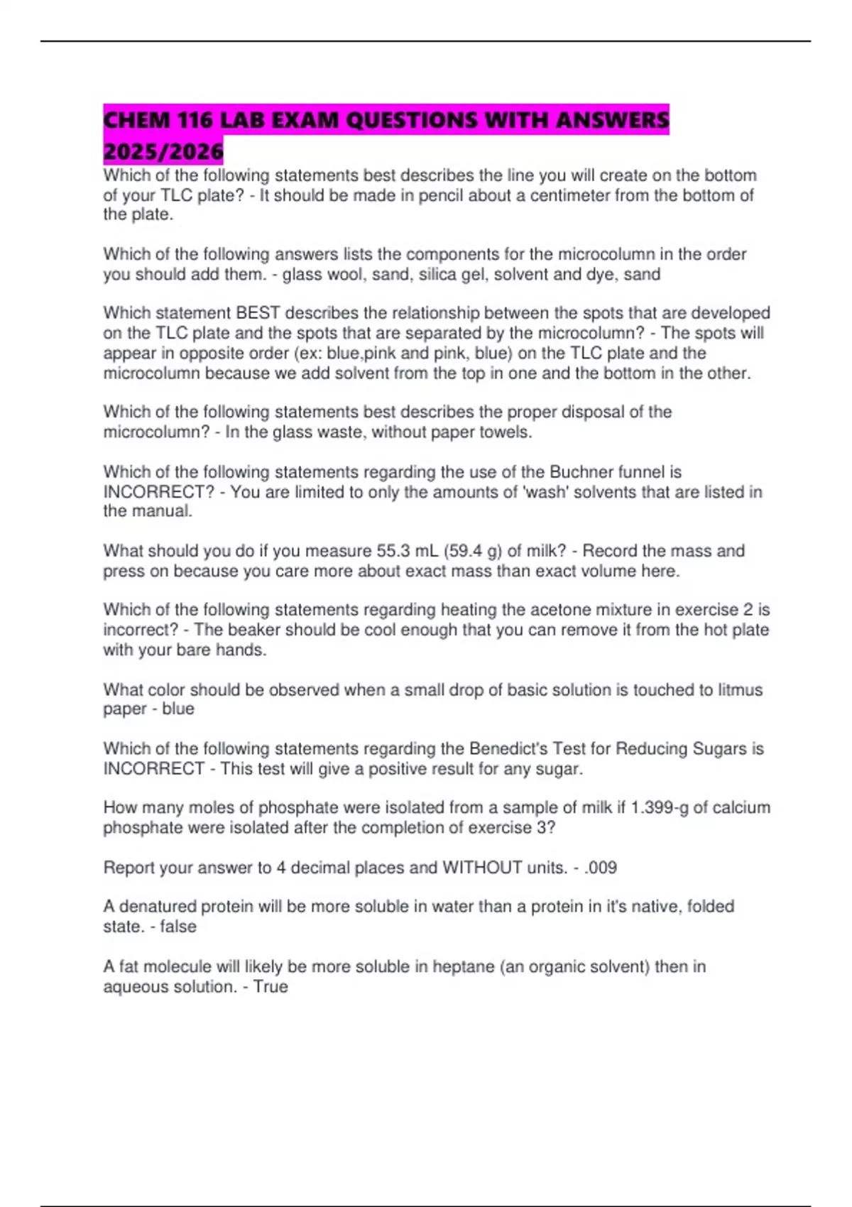 this week's lab is FALSE? - pH data should be collected following completion of all of