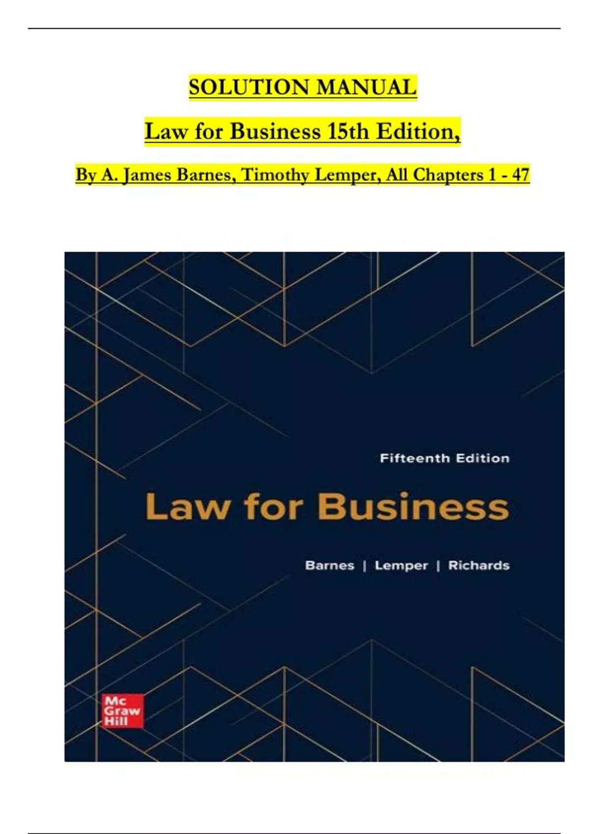 SOLUTION MANUAL For Law for Business, 15th Edition By A. James Barnes, Timothy Lemper, Verified All-Chapters 1 - 47, Complete Solution Guide