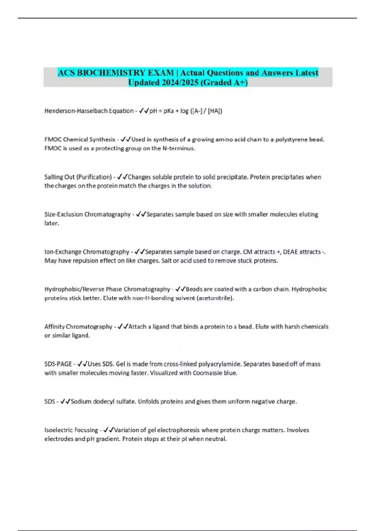 ACS BIOCHEMISTRY EXAM | Actual Questions and Answers Latest Updated 2024/2025 (Graded A+)