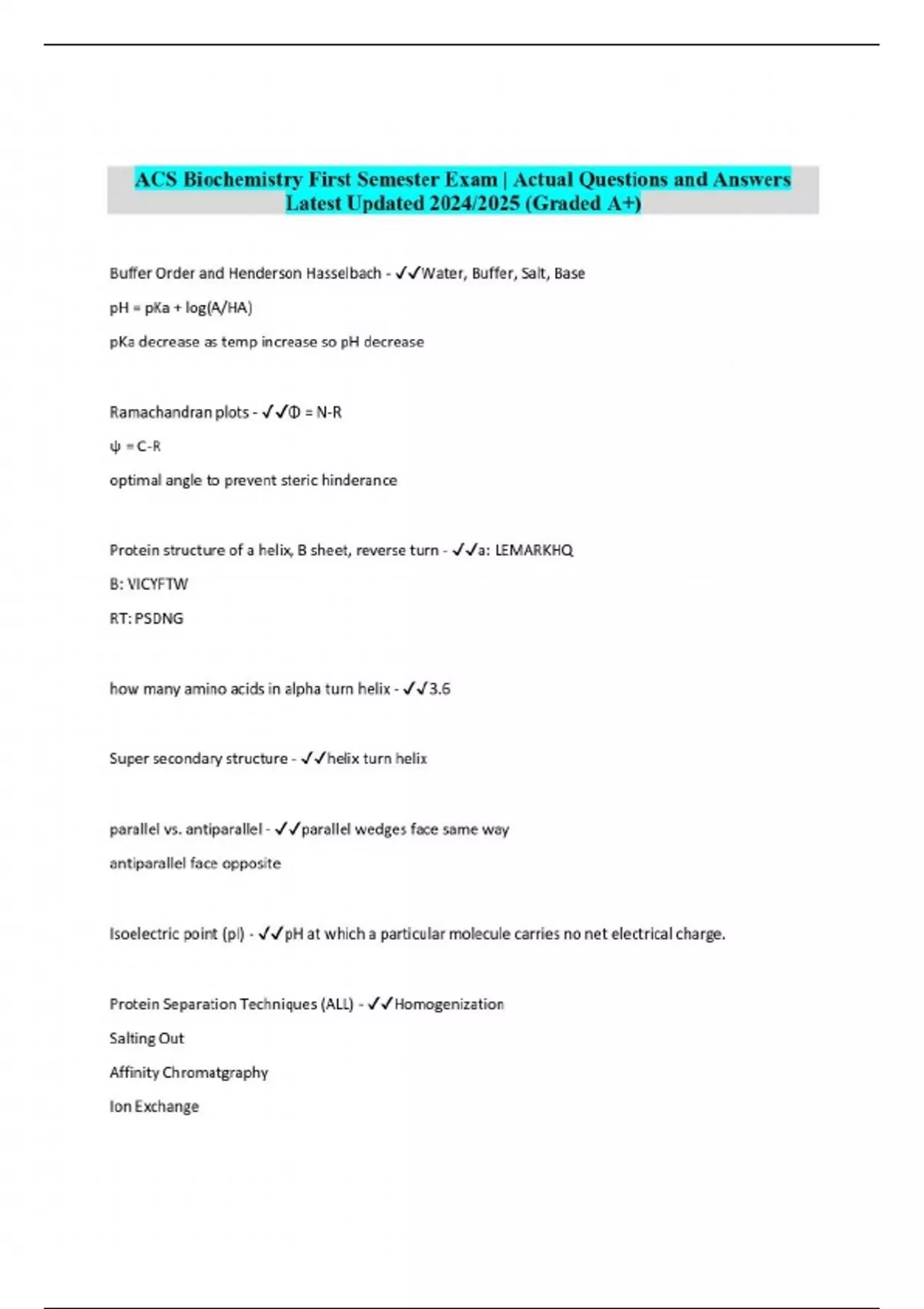 Bundled ACS BIOCHEMISTRY | Actual Questions and Answers Latest Updated 2024/2025 (Graded A+)
