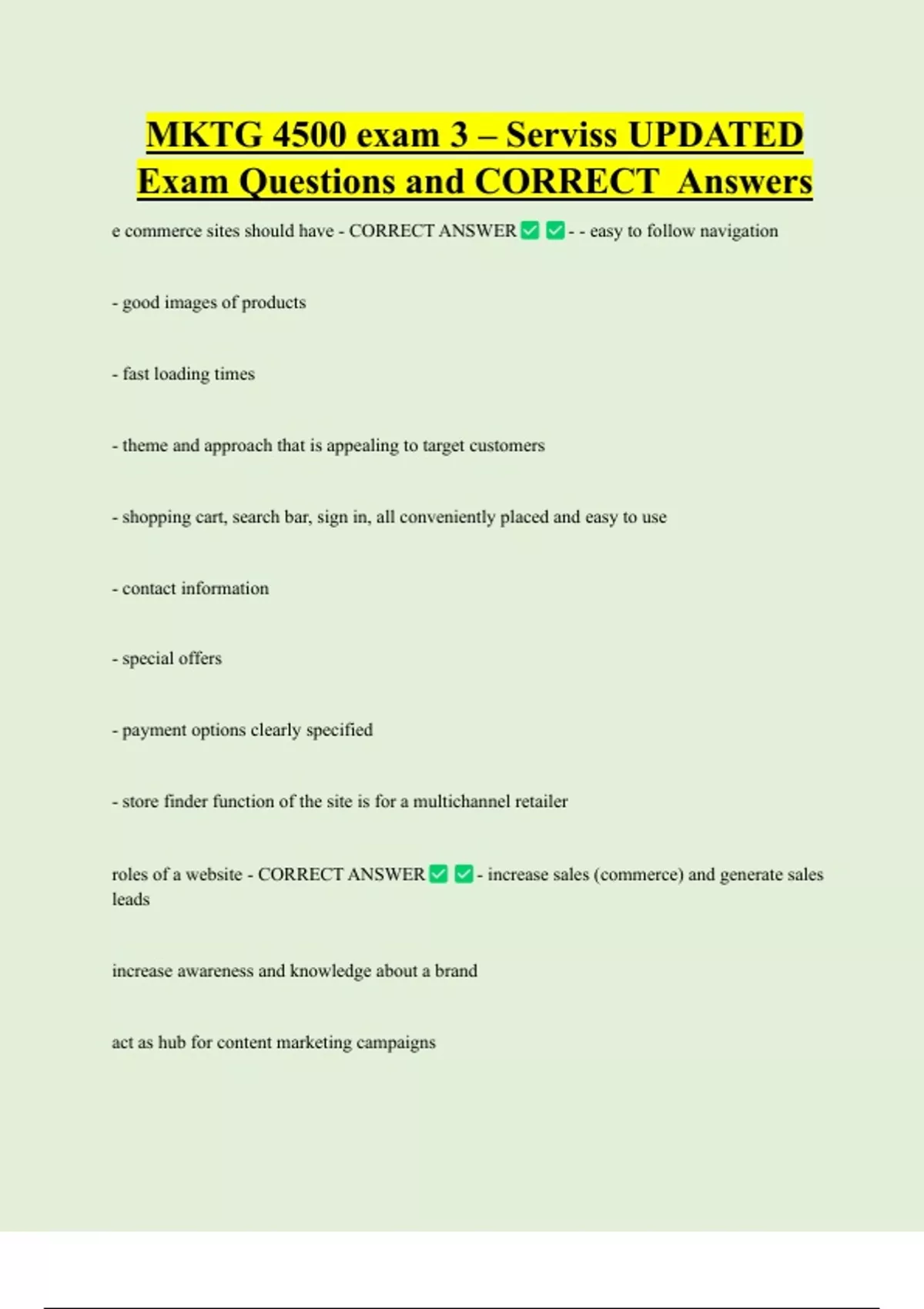 e commerce sites should have - CORRECT ANSWER - - easy to follow navigation