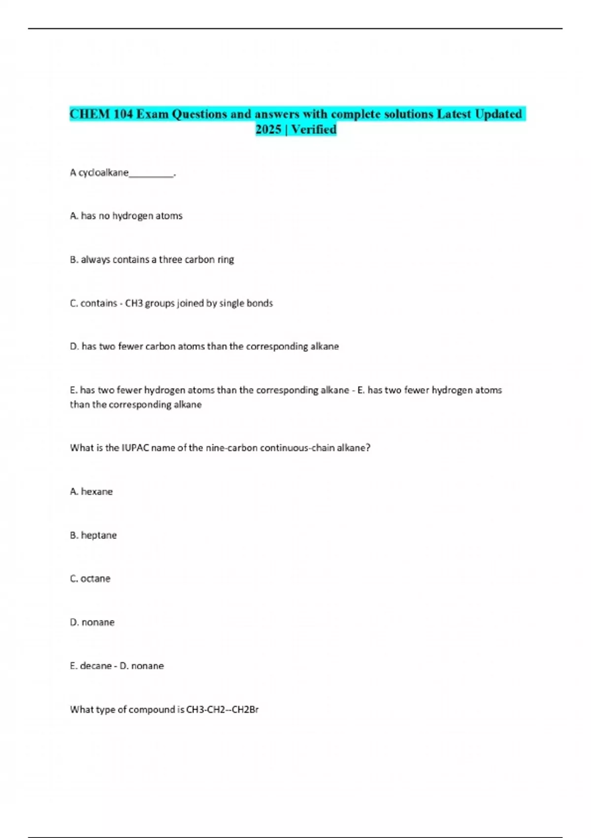 CHEM 104 Exam Questions and answers with complete solutions Latest Updated 2025 | Verified