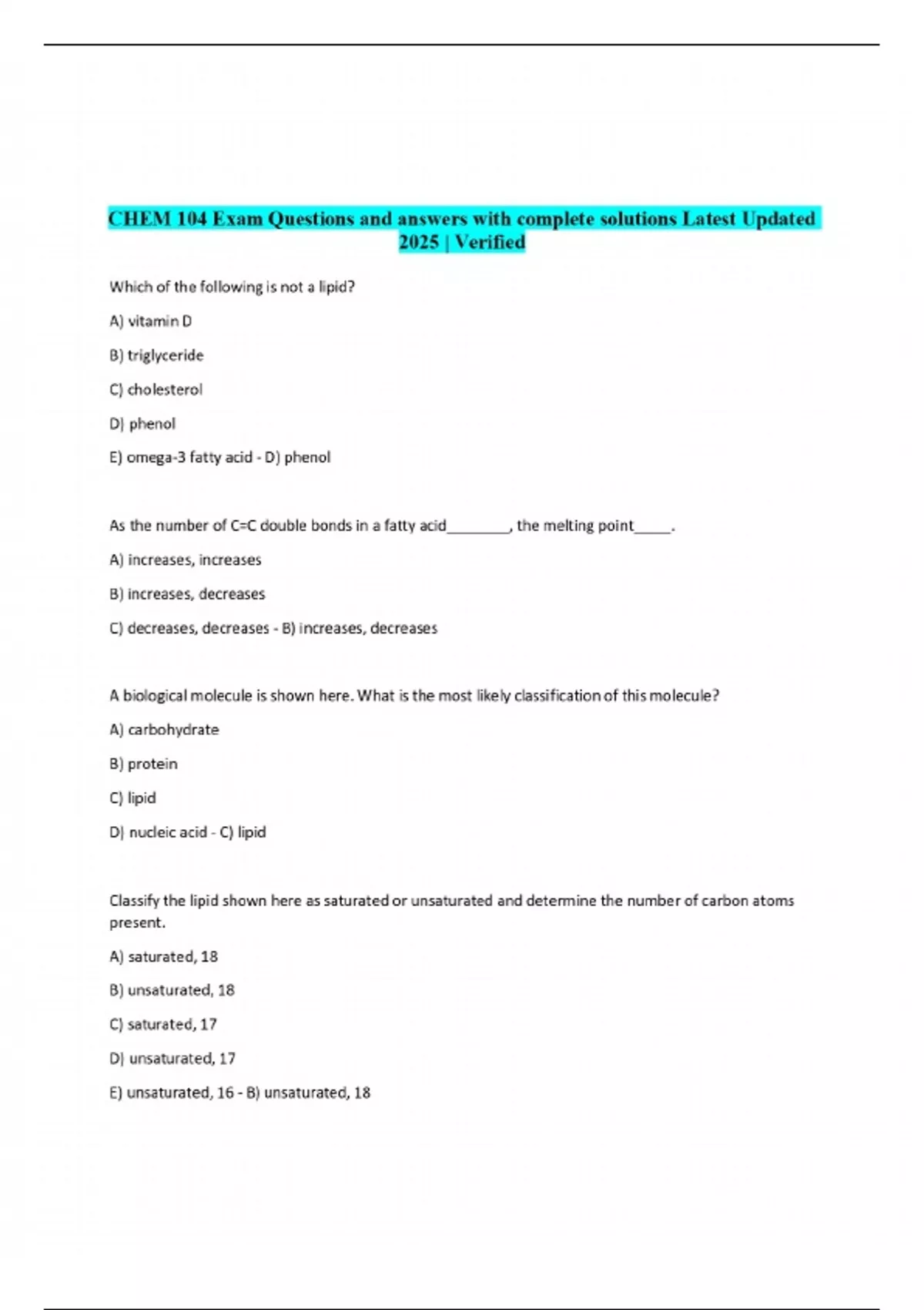 CHEM 104 Exam Questions and answers with complete solutions Latest Updated 2025 | Verified