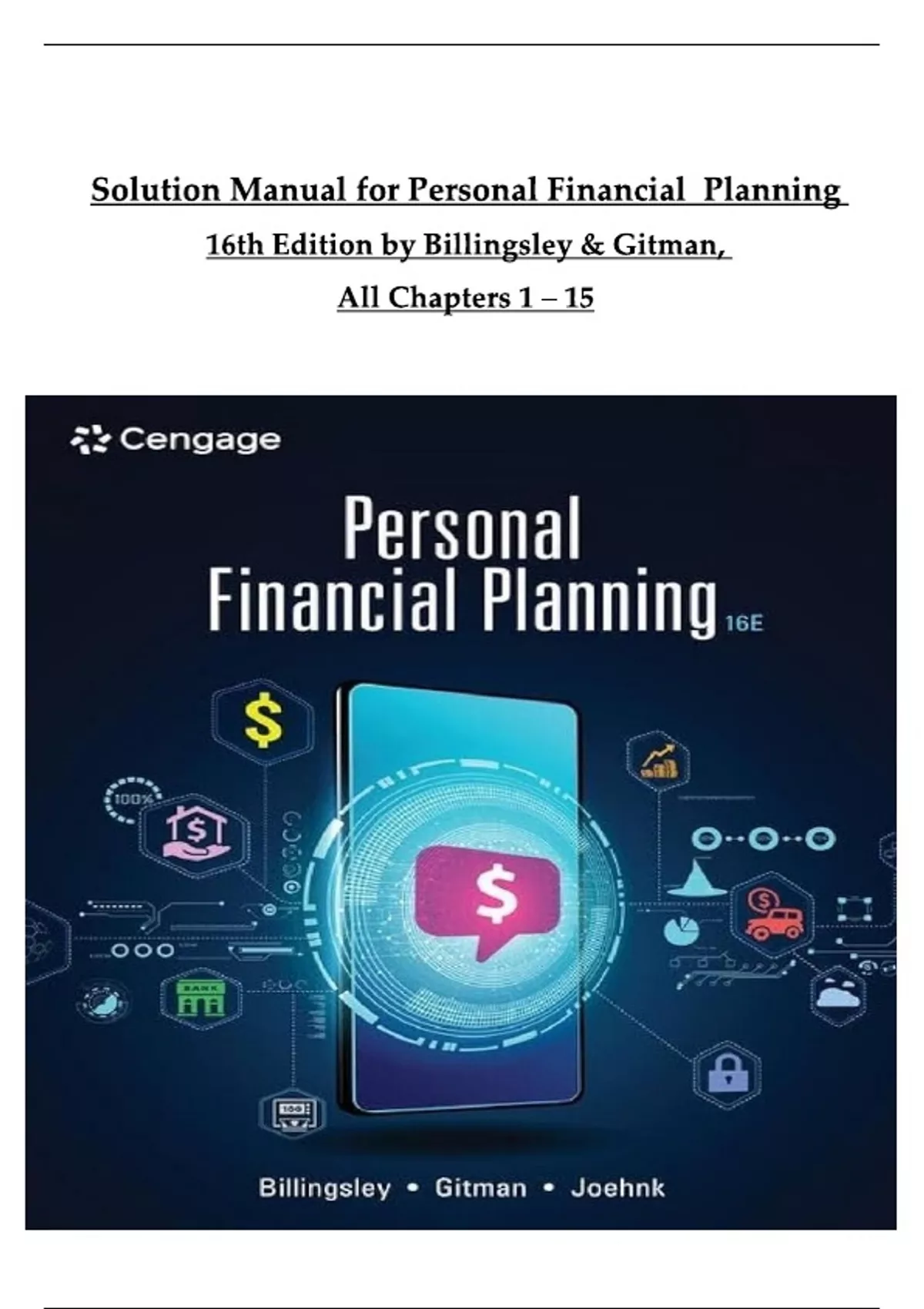Solution Manual for Personal Financial Planning 16th Edition by Randy Billingsley, Lawrence J. Gitman, Michael D. Joehnk All Chapters 1 – 15 Complete Newest Version ( Original Verified, A+ Grade)