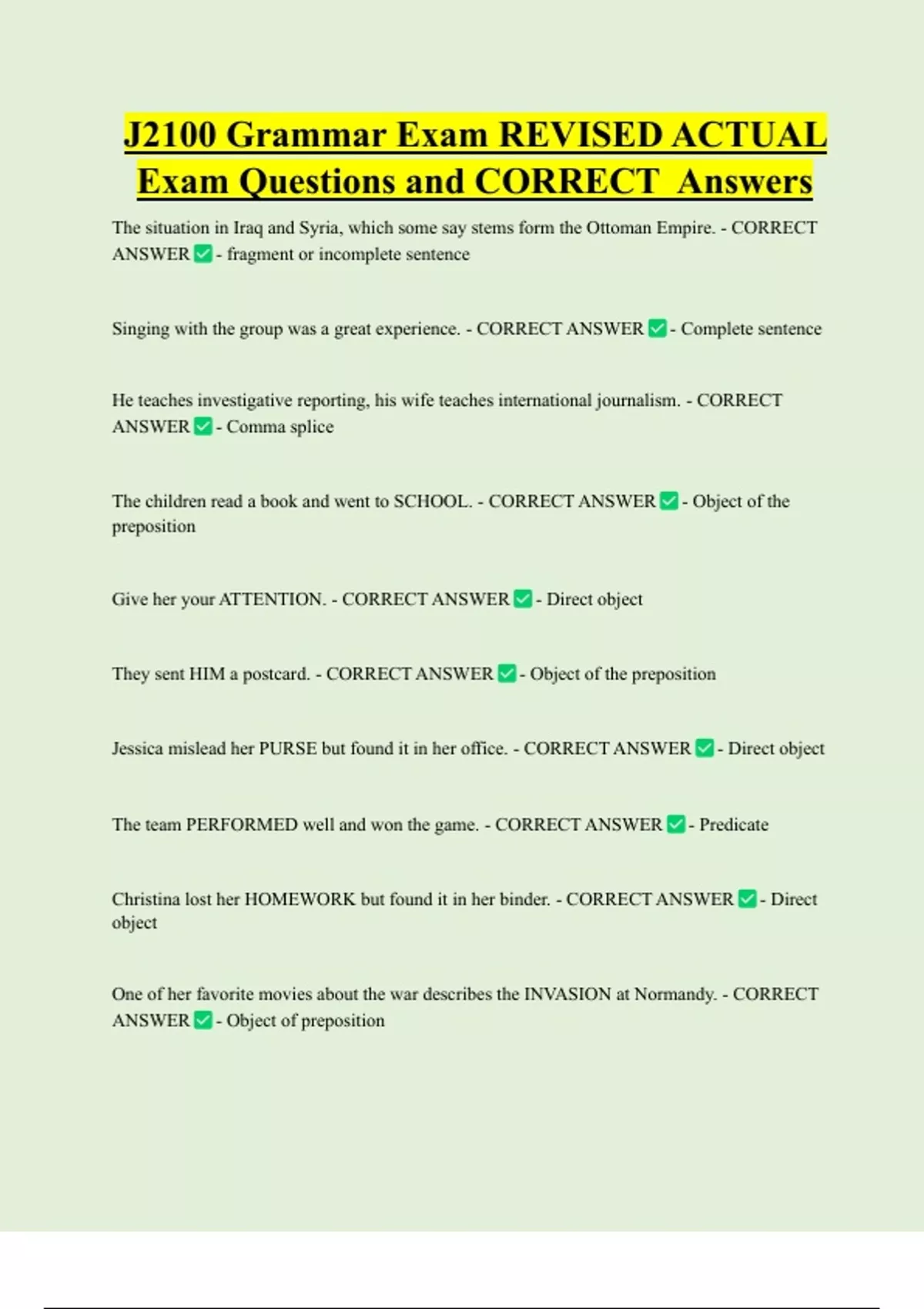 J2100 Grammar Exam REVISED ACTUAL Exam Questions and CORRECT Answers