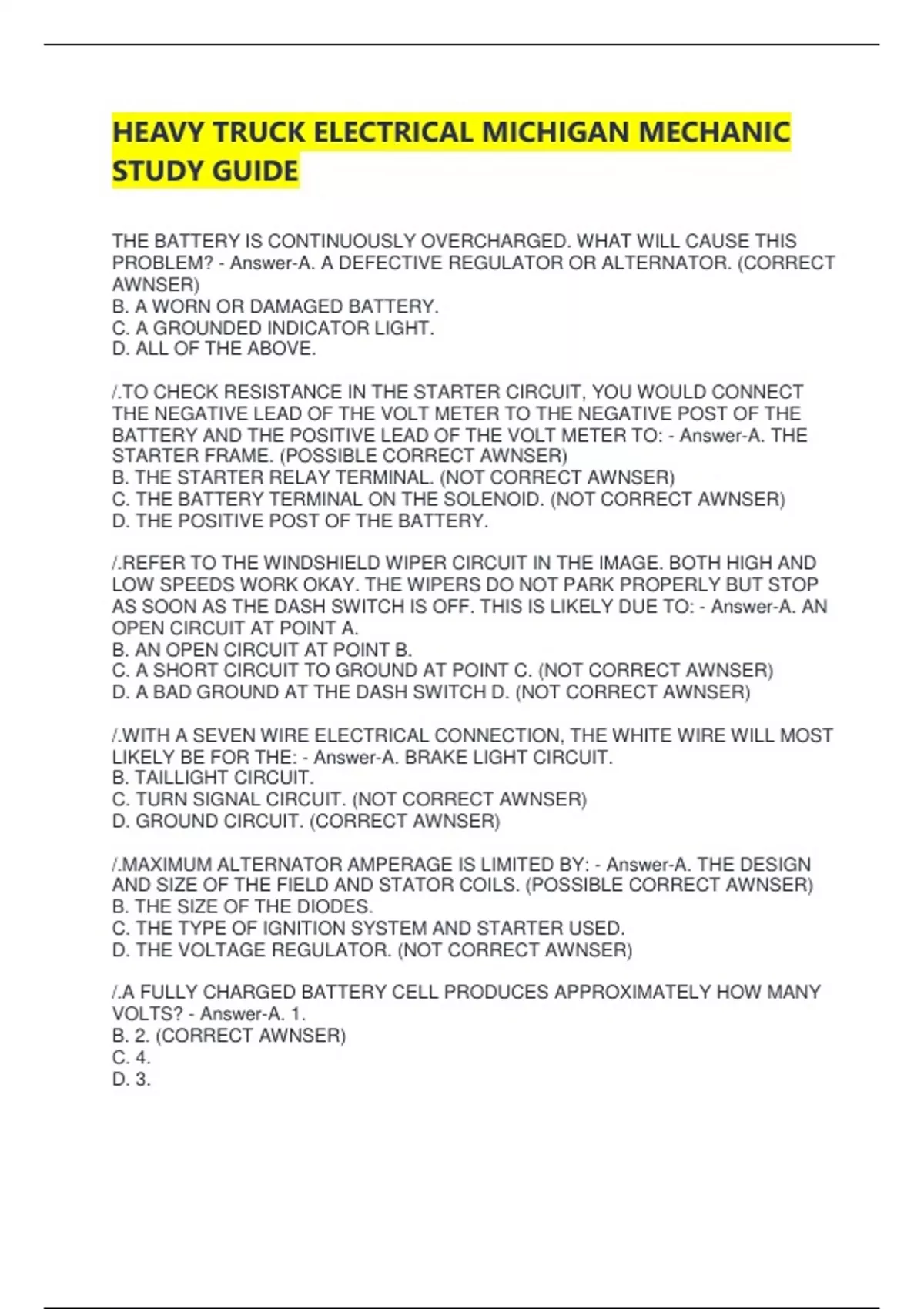 PROBLEM? - Answer-A. A DEFECTIVE REGULATOR OR ALTERNATOR. (CORRECT
