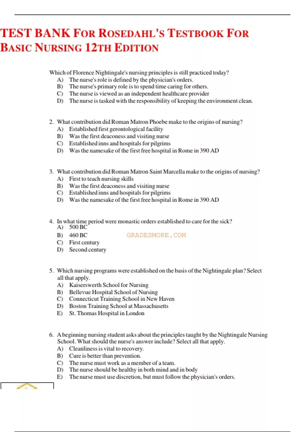 TEST BANK FOR ROSEDAHL'S TESTBOOK FOR