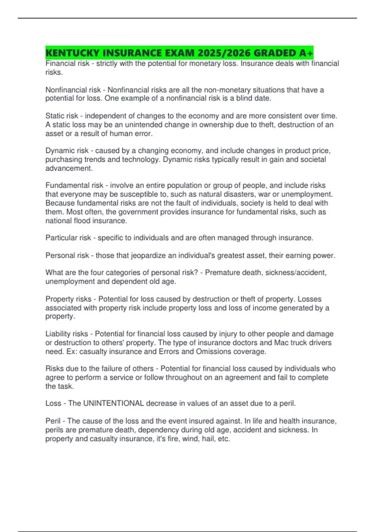 Financial risk - strictly with the potential for monetary loss. Insurance deals with financial