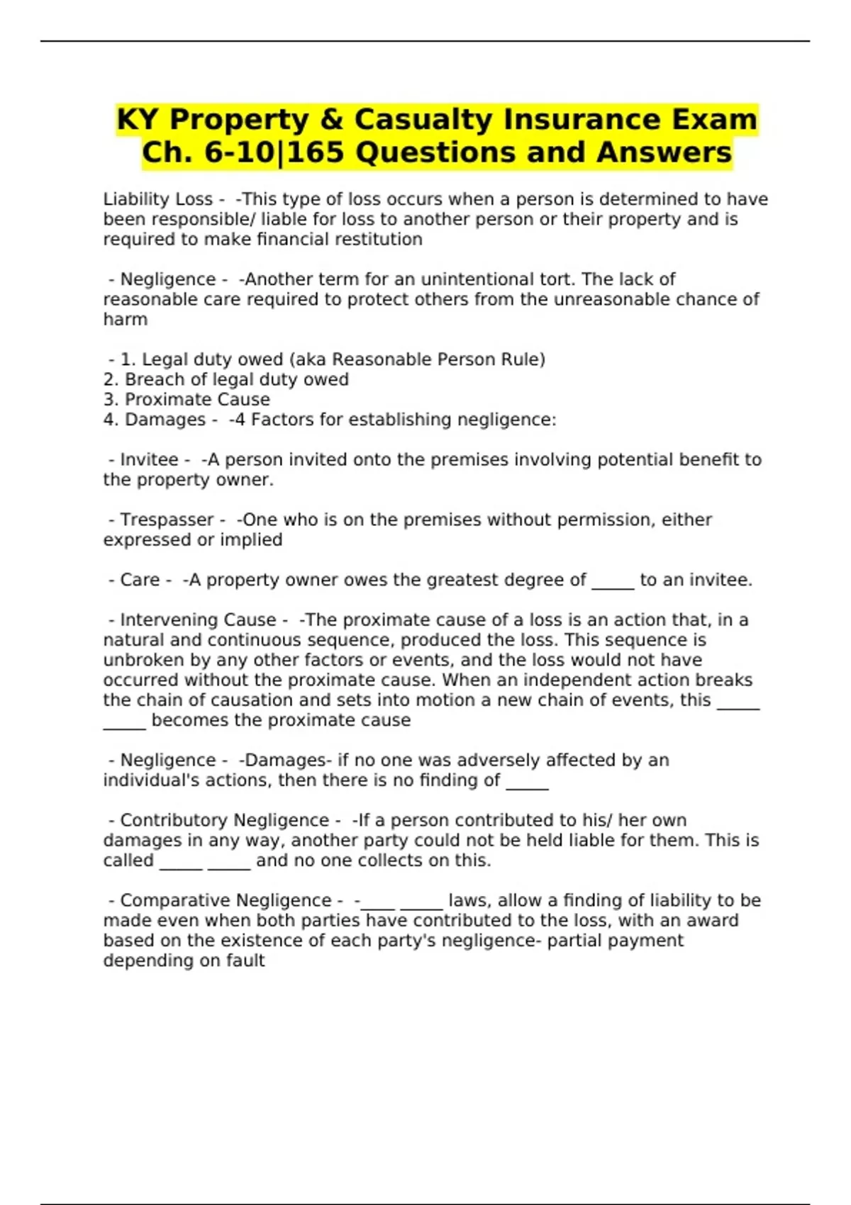 KY Property & Casualty Insurance Exam
