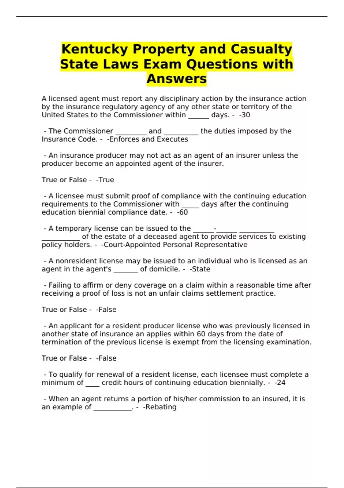 State Laws Exam Questions with