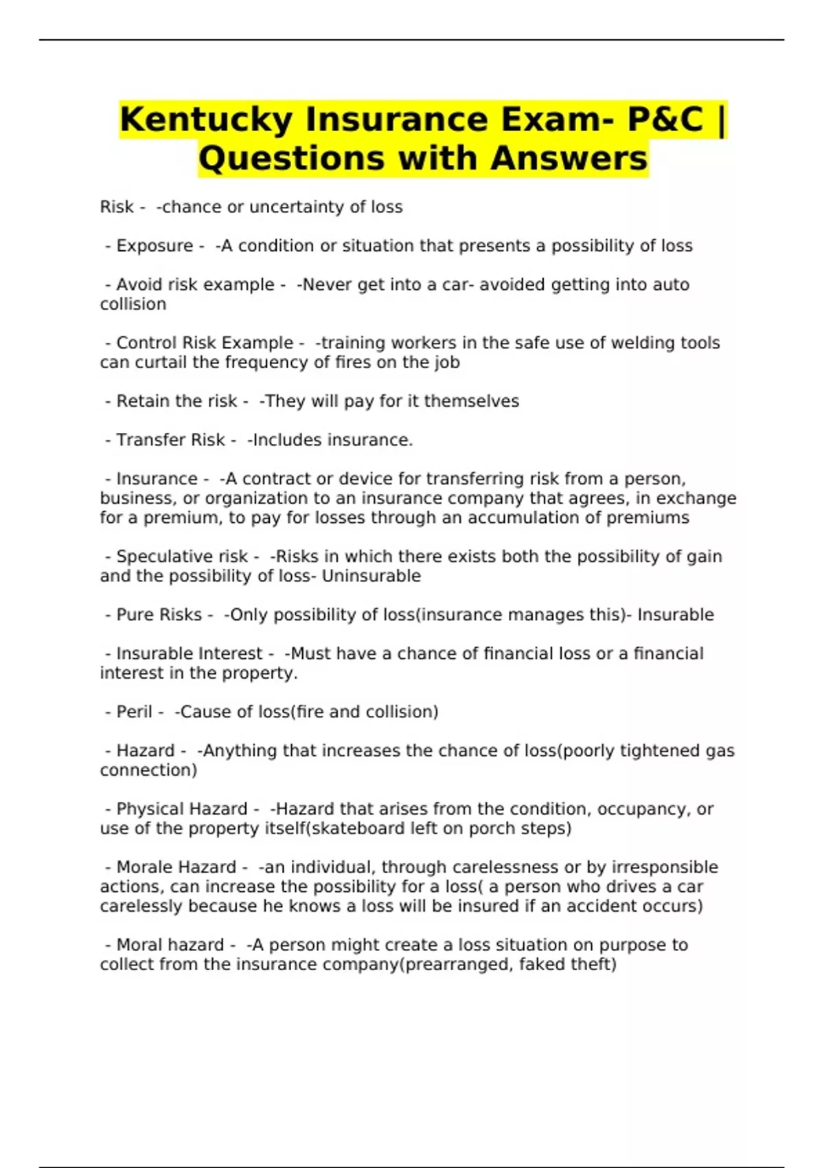 Kentucky Insurance Exam- P&C |
