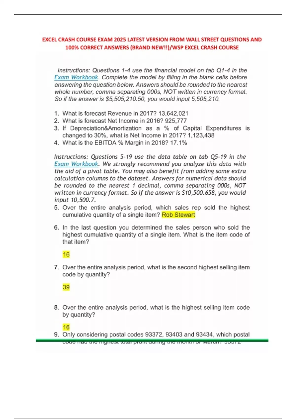 100% CORRECT ANSWERS (BRAND NEW!!)/WSP EXCEL CRASH COURSE