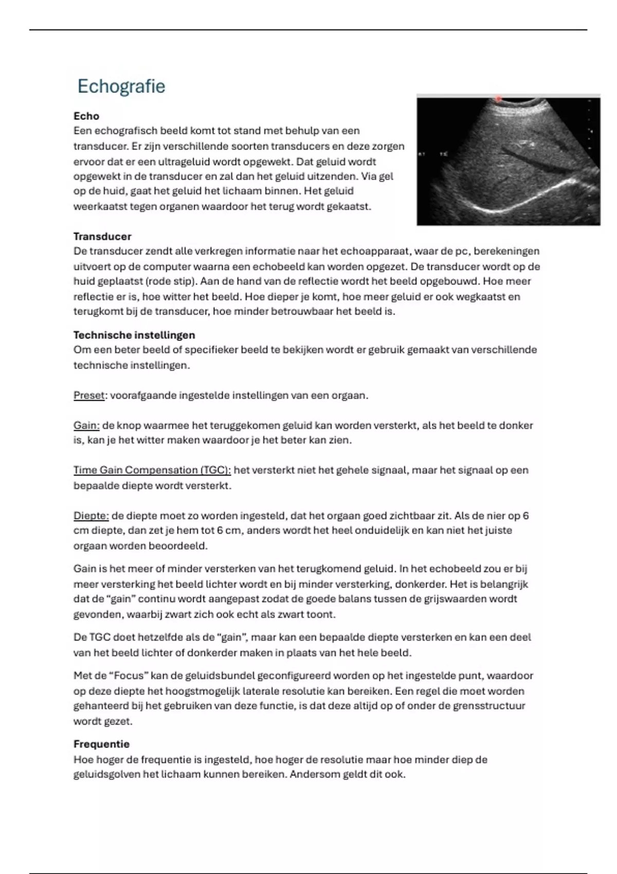 Time Gain Compensation (TGC): het versterkt niet het gehele signaal, maar het signaal op een