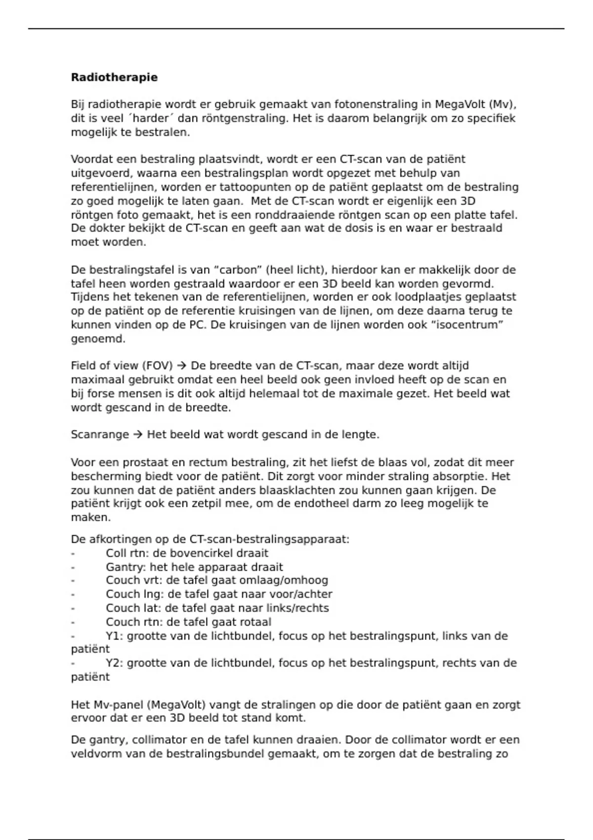 Dit document bevat een samenvatting over het gehele eerste jaar van de radiotherapie les.