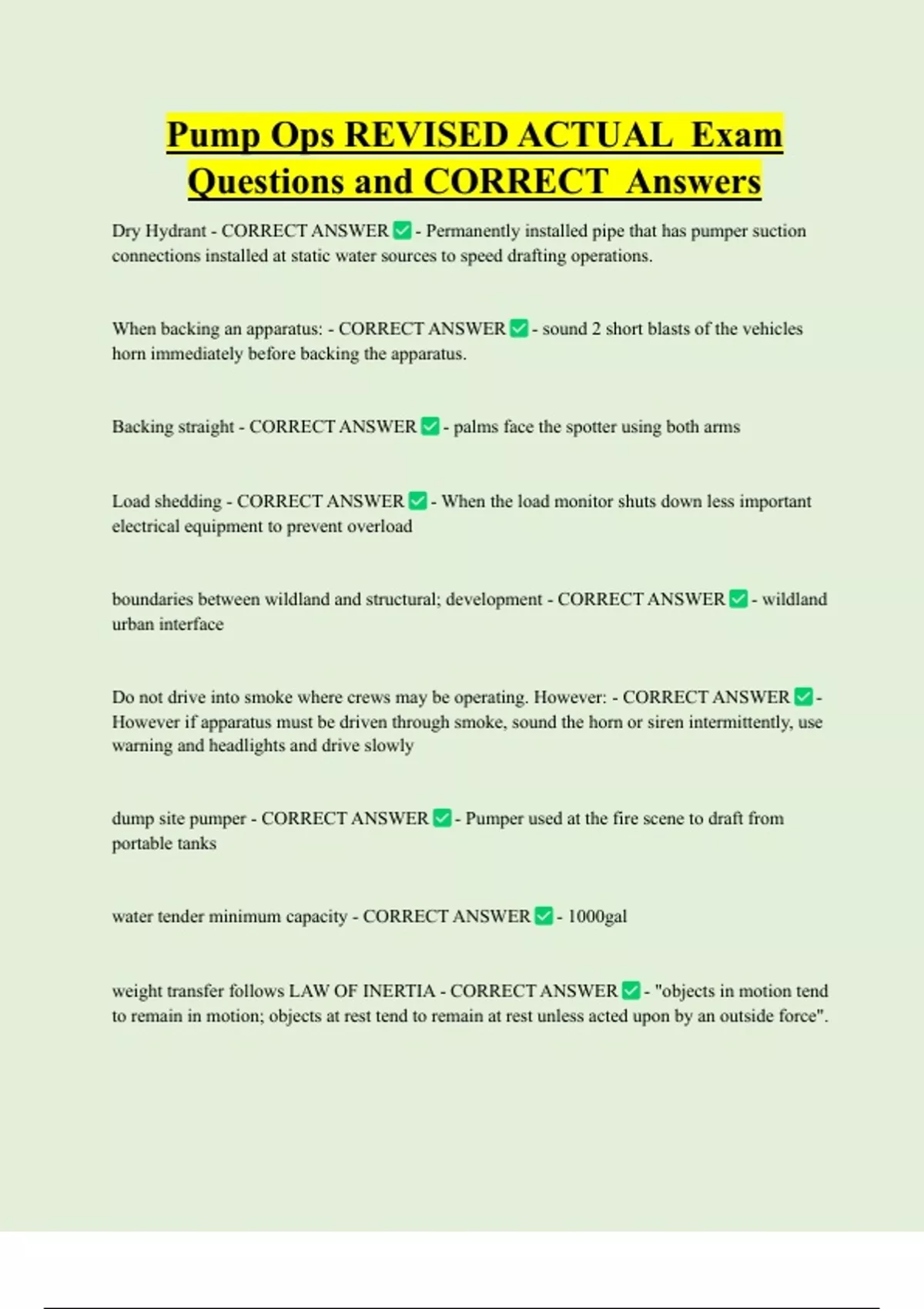 Pump Ops REVISED ACTUAL Exam Questions and CORRECT Answers