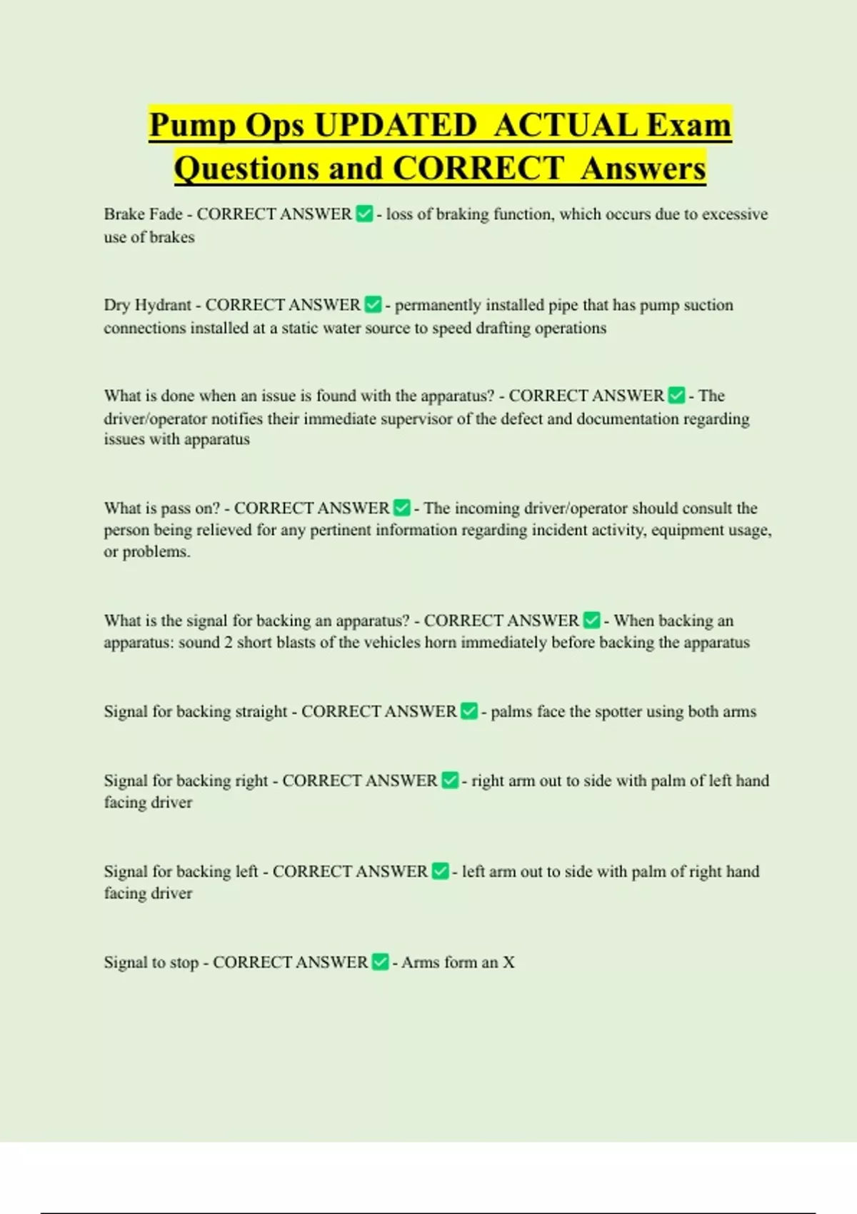 What is pass on? - CORRECT ANSWER - The incoming driver/operator should consult the