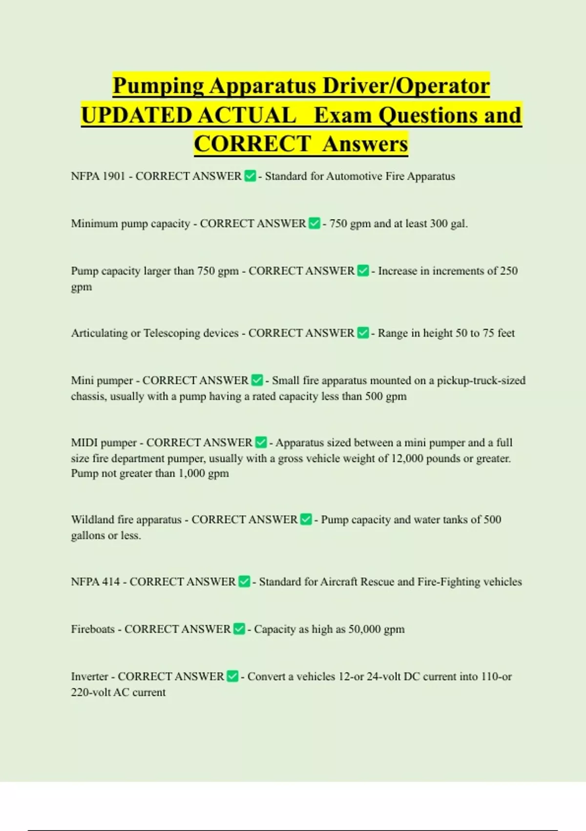 NFPA 1901 - CORRECT ANSWER - Standard for Automotive Fire Apparatus