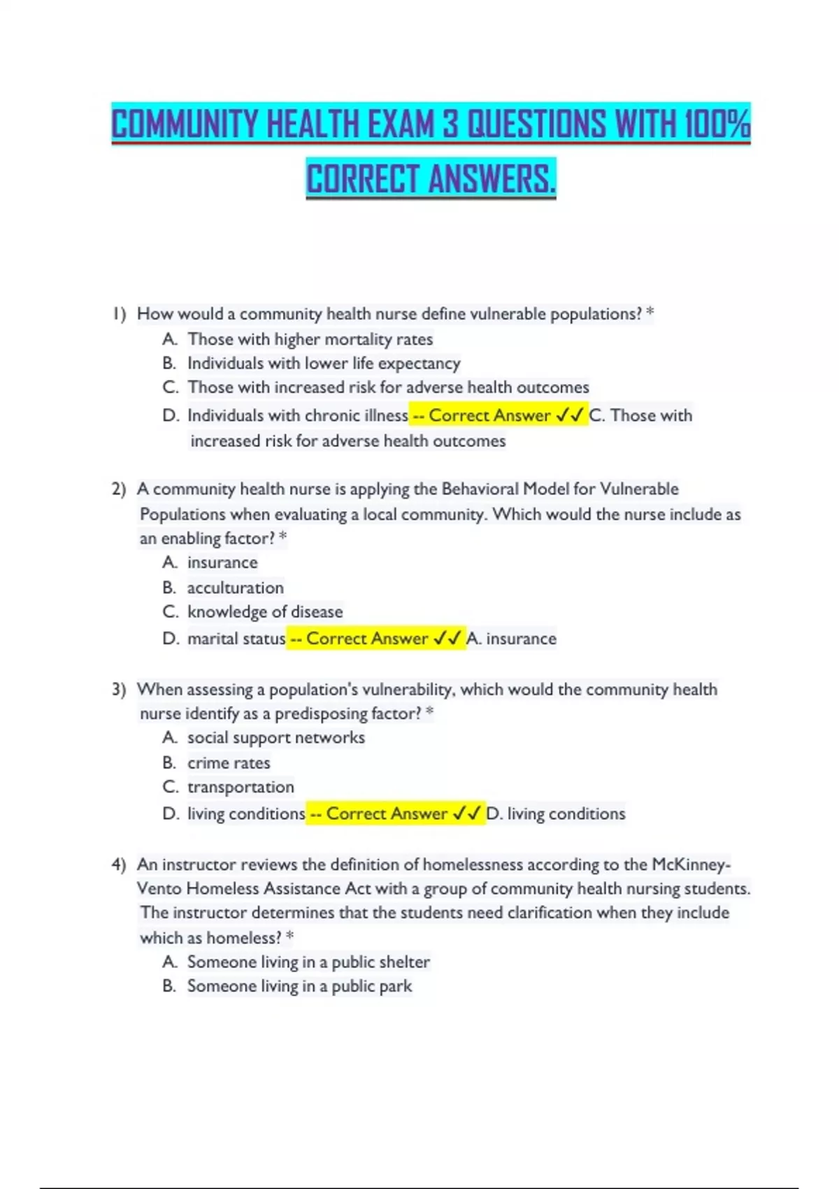 COMMUNITY HEALTH EXAM 3 QUESTIONS WITH 100% CORRECT ANSWERS