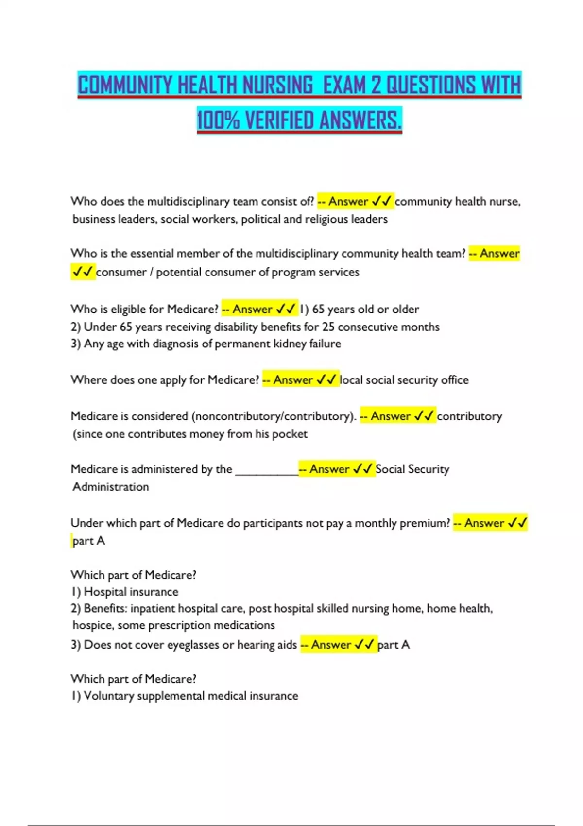 COMMUNITY HEALTH NURSING EXAM 2 QUESTIONS WITH