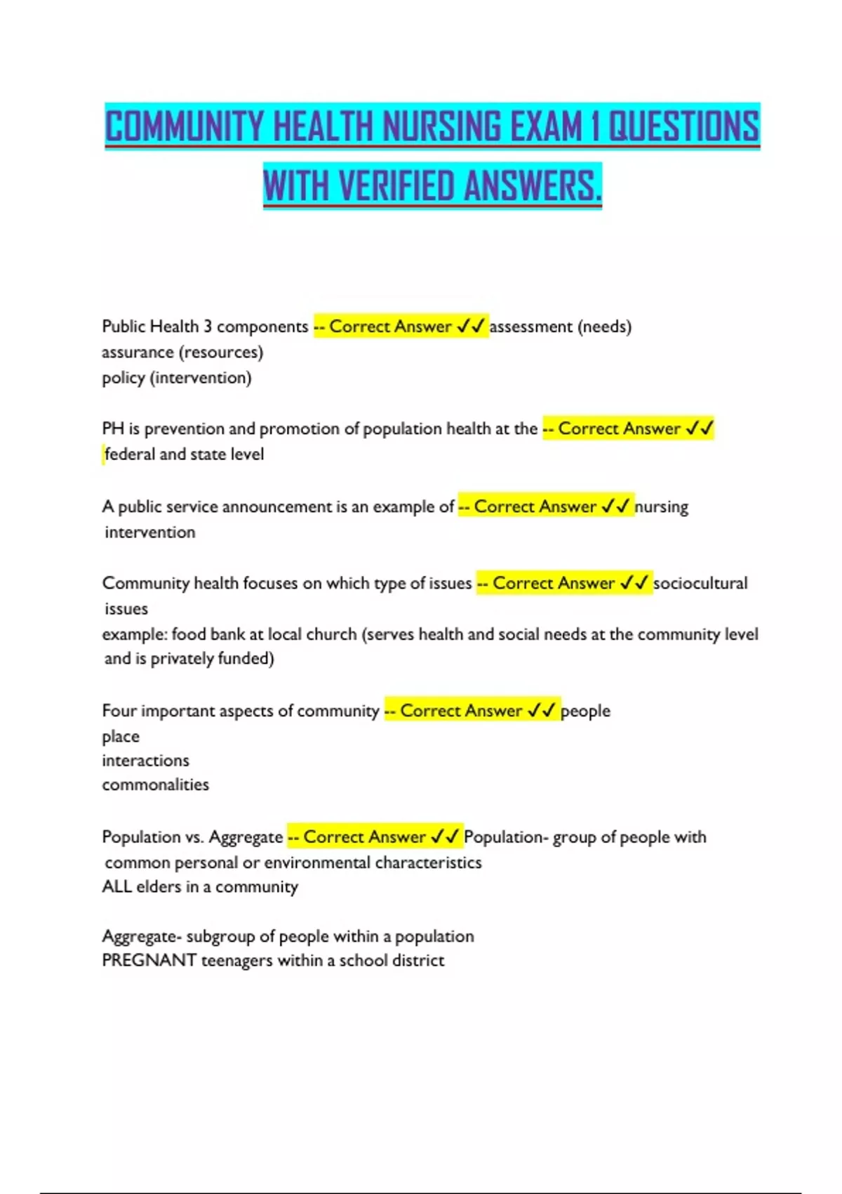 Community health focuses on which type of issues -- Correct Answer ✔✔ sociocultural