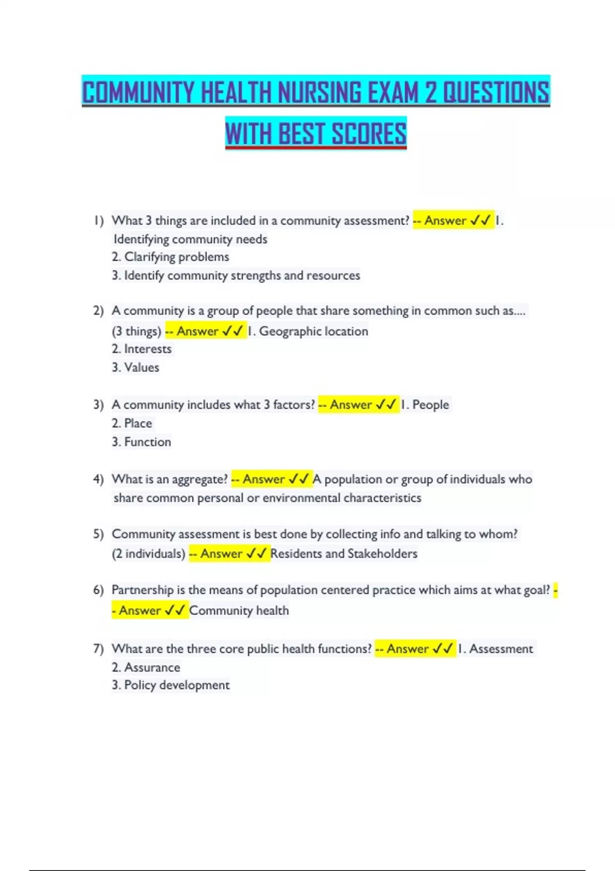 - Answer ✔✔ Community health