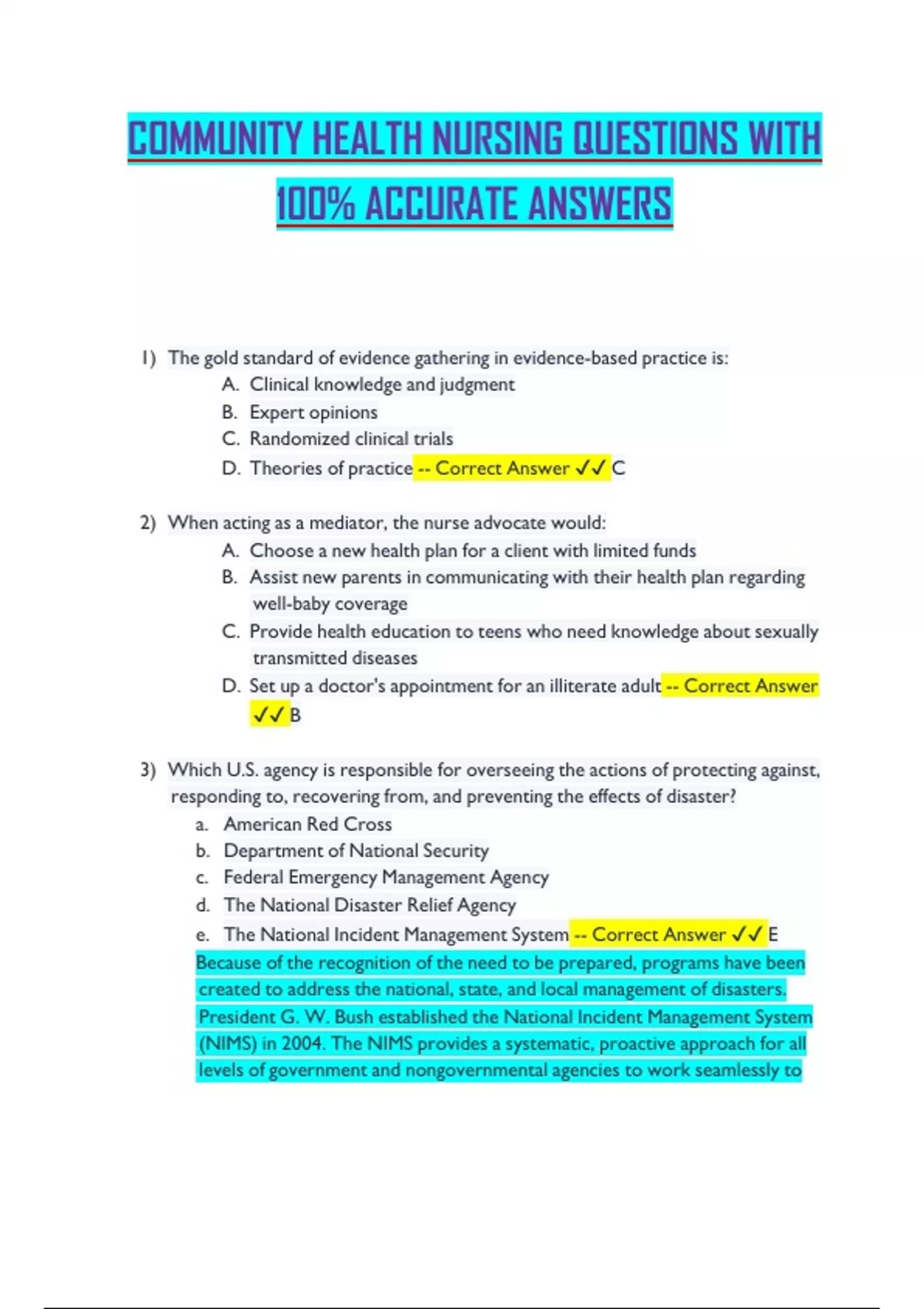 COMMUNITY HEALTH NURSING QUESTIONS WITH