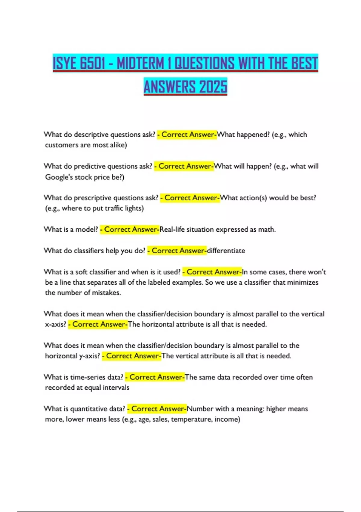 ISYE 6501 - MIDTERM 1 QUESTIONS WITH THE BEST