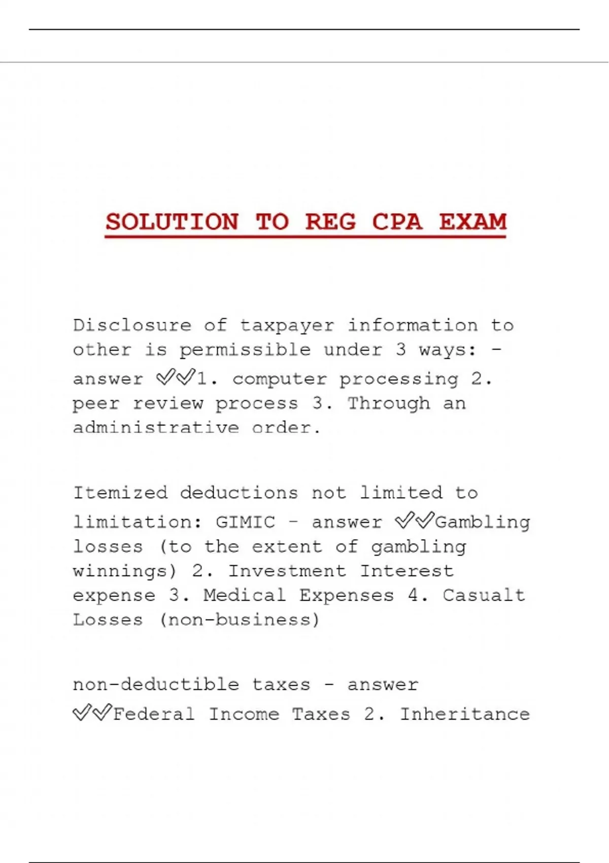 SOLUTION TO REG CPA EXAM