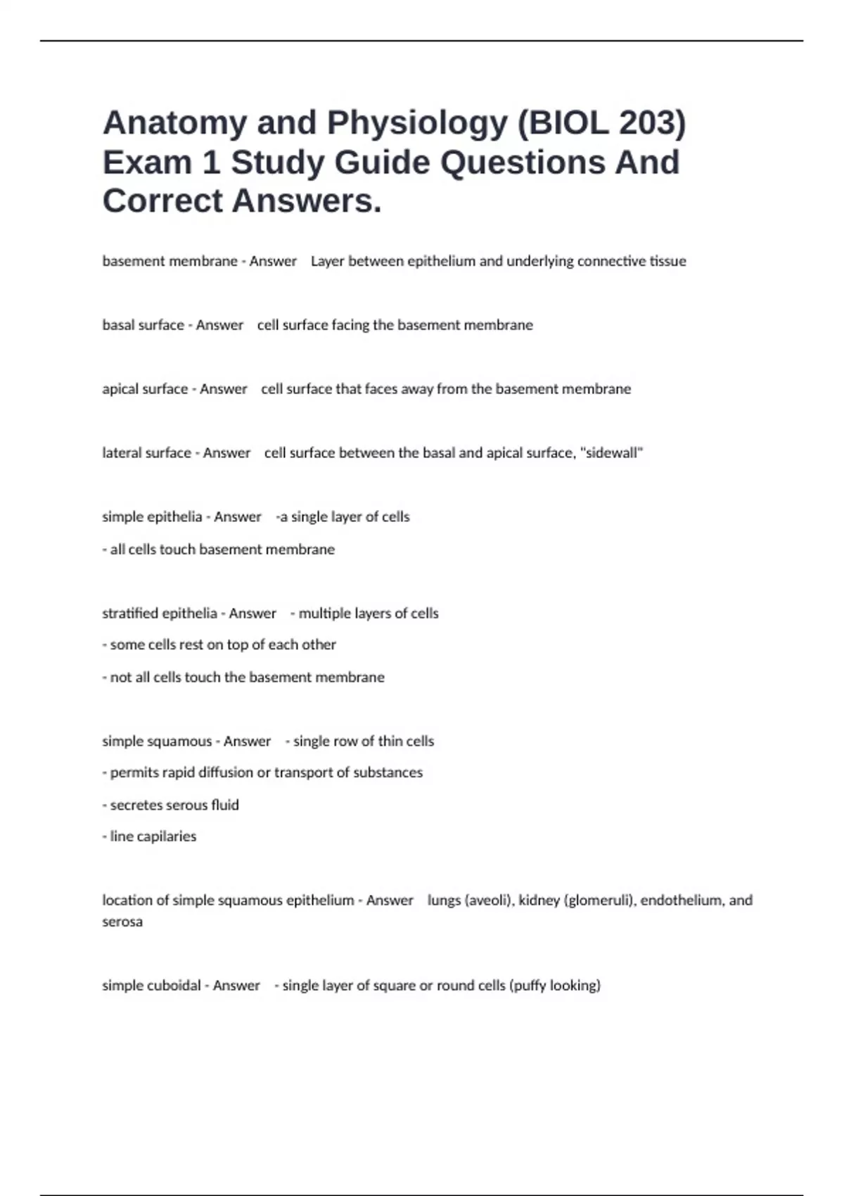 location of stratified cuboidal epithelium - Answer - sweat gland ducts