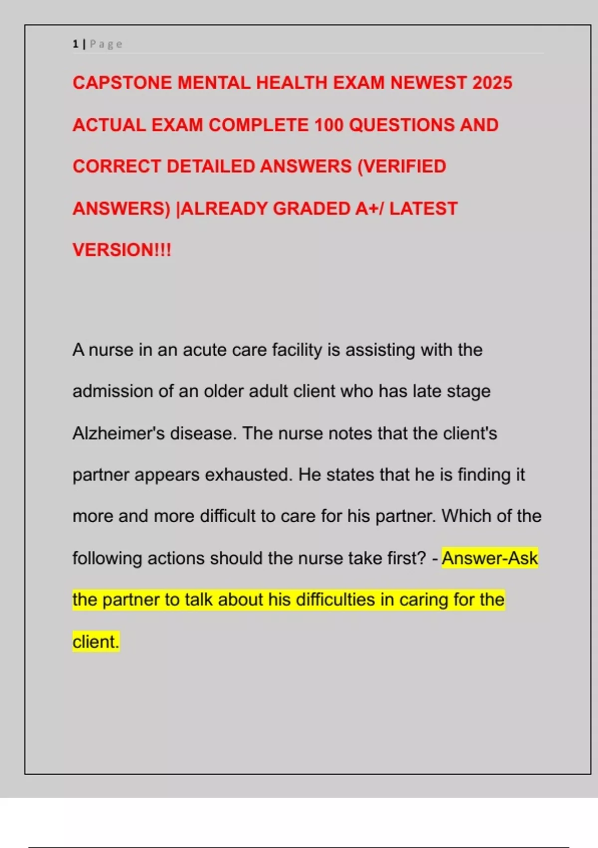 CAPSTONE MENTAL HEALTH EXAM NEWEST 2025