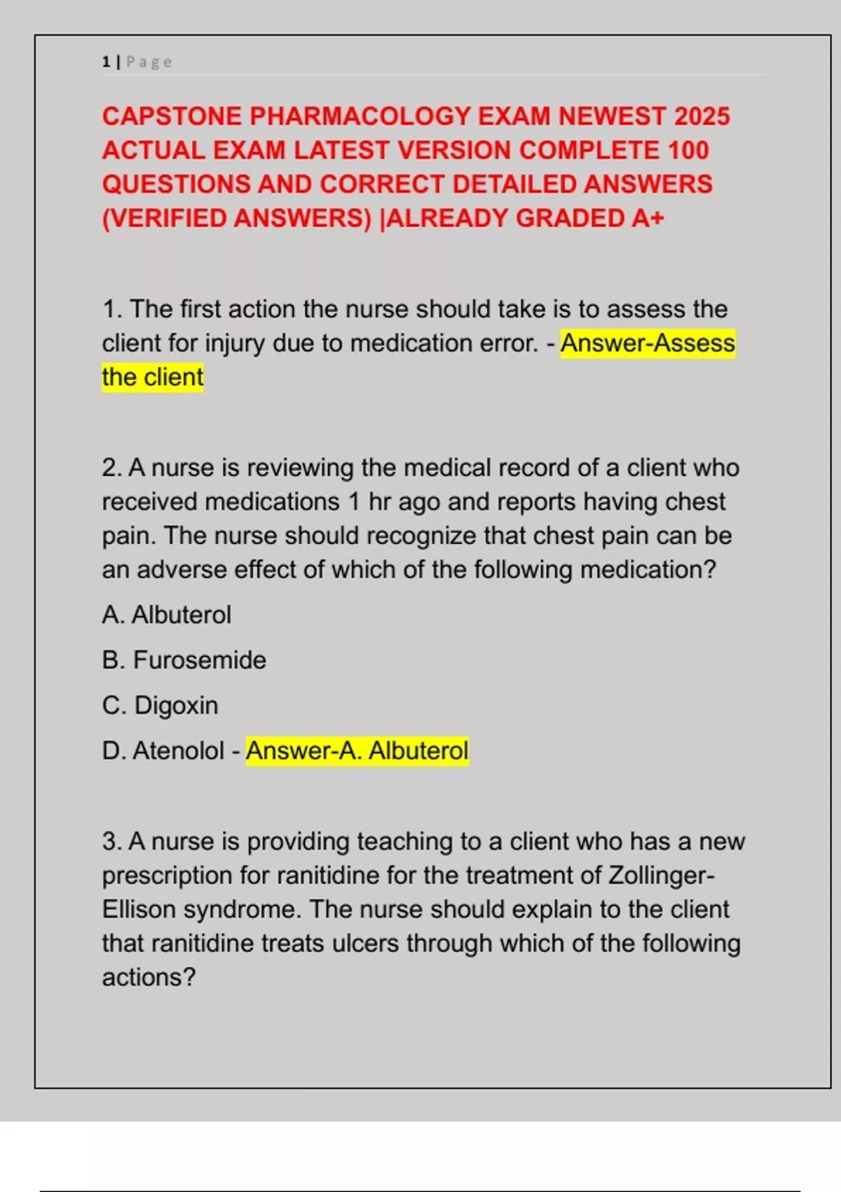 CAPSTONE PHARMACOLOGY EXAM NEWEST 2025